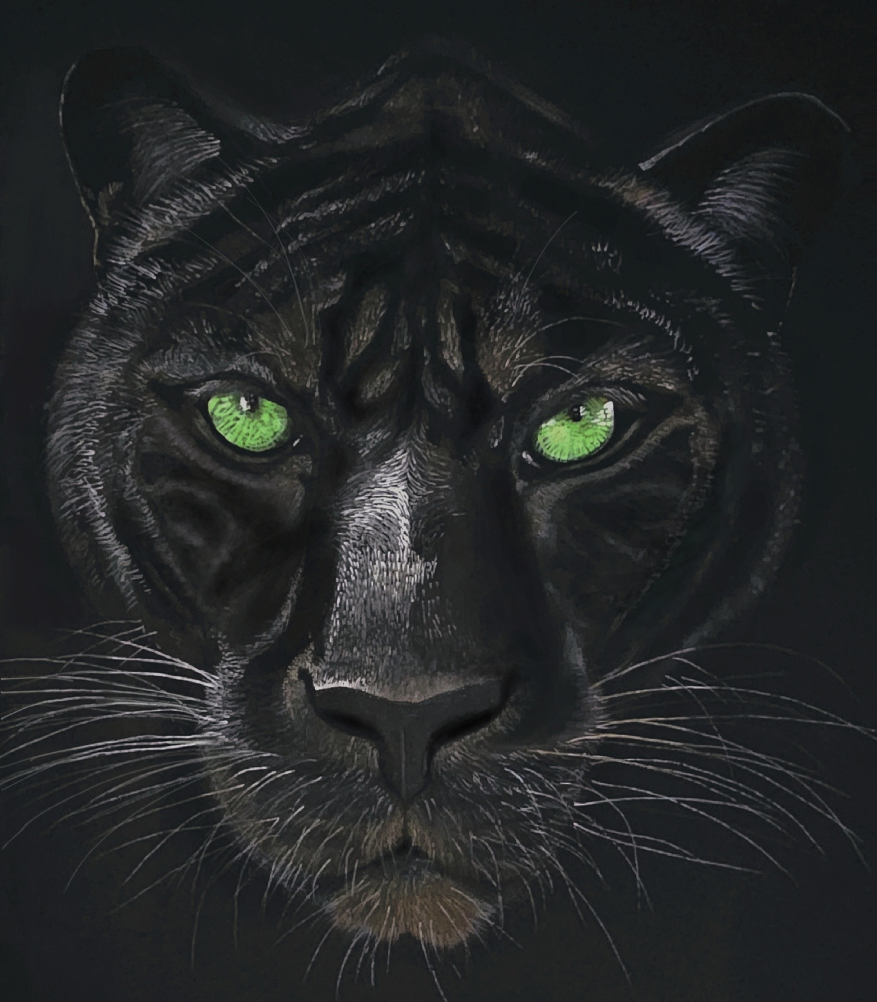 Muurschildering zwarte panter 130 cm X 130 cm Met acrylverf en witte stift
