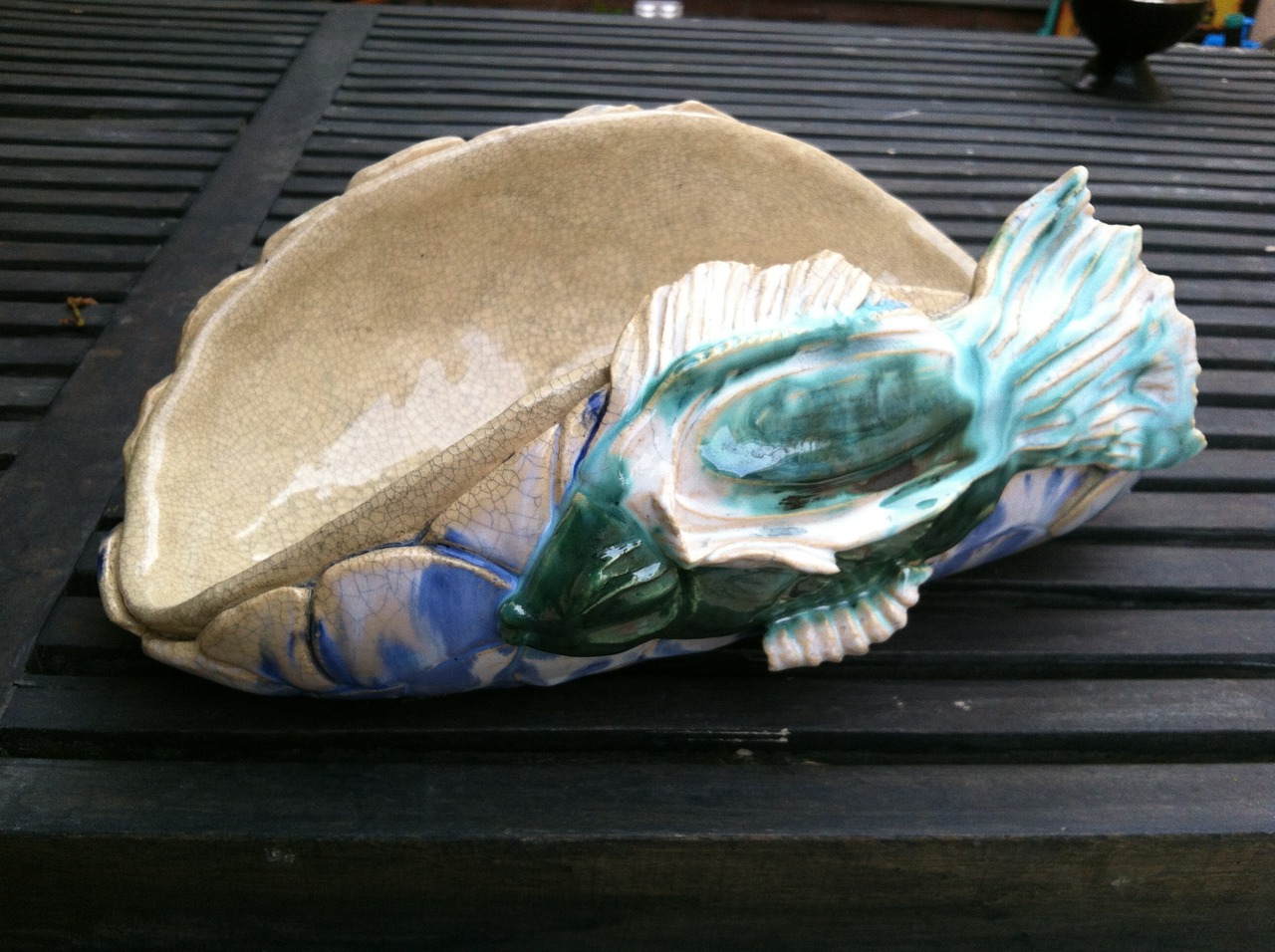 Schaal met vis ( geglazuurd met drie kleuren)