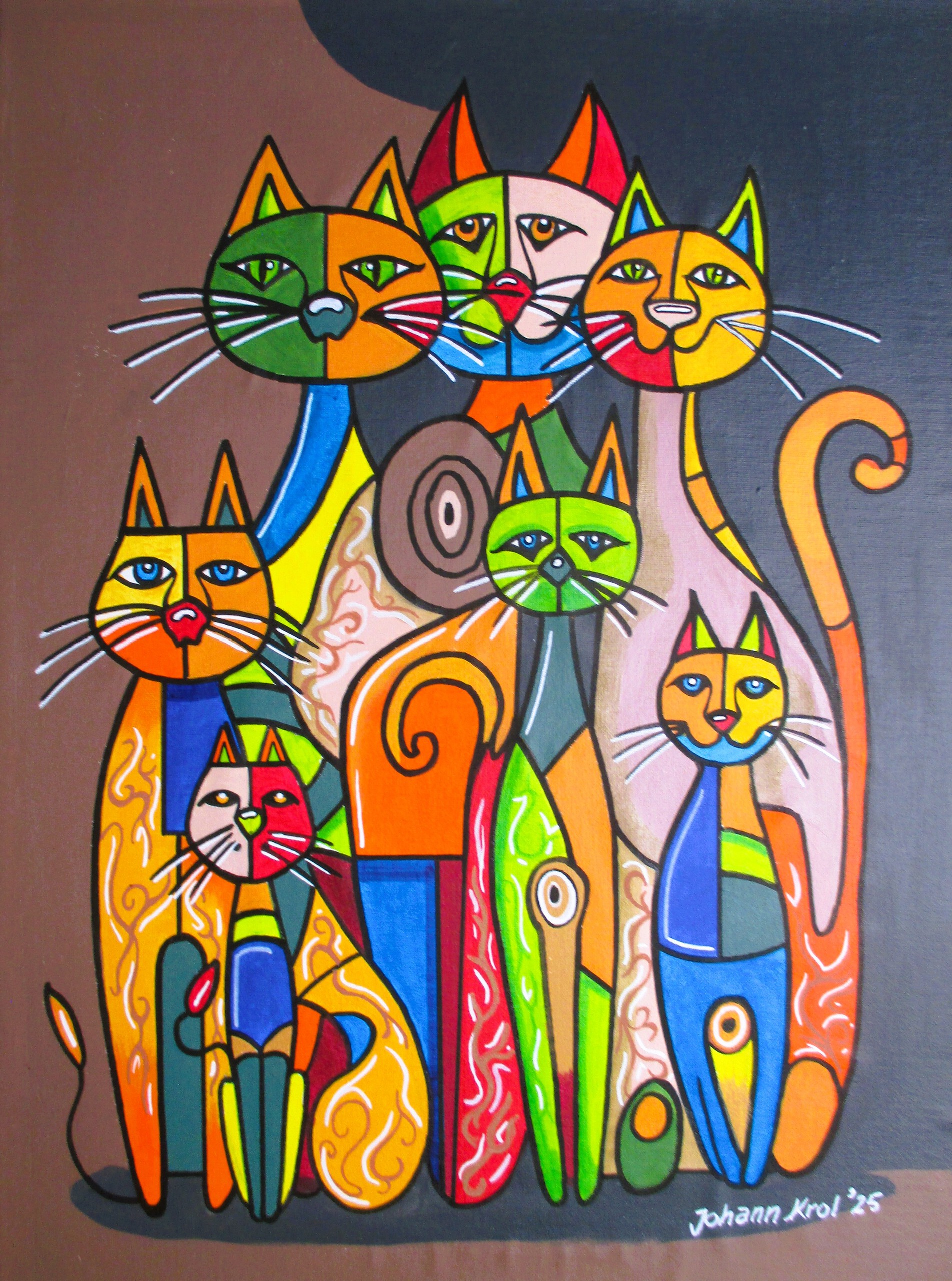 Mijn naam is Johann Krol, al vanaf mijn jeugd is tekenen en schilderen mijn grote passie. Werkte ik in mijn beginjaren voornamelijk met pen en inkt, kleurpotloden, stiften, en grafische technieken. Sinds een jaar of tien ook met olieverf, acrylverf, en pastel. Zowel realistisch als ook figuratief abstract. Waarin ik vaak speel met geometrische lijnen en bonte kleuren. Mijn onderwerpen bestaan dan ook uit alledaagse dingen, dieren, en mensen. Ook hou ik me bezig met het maken van wandschilderijen, sculpturen, en het ontwerpen van boekomslagen.