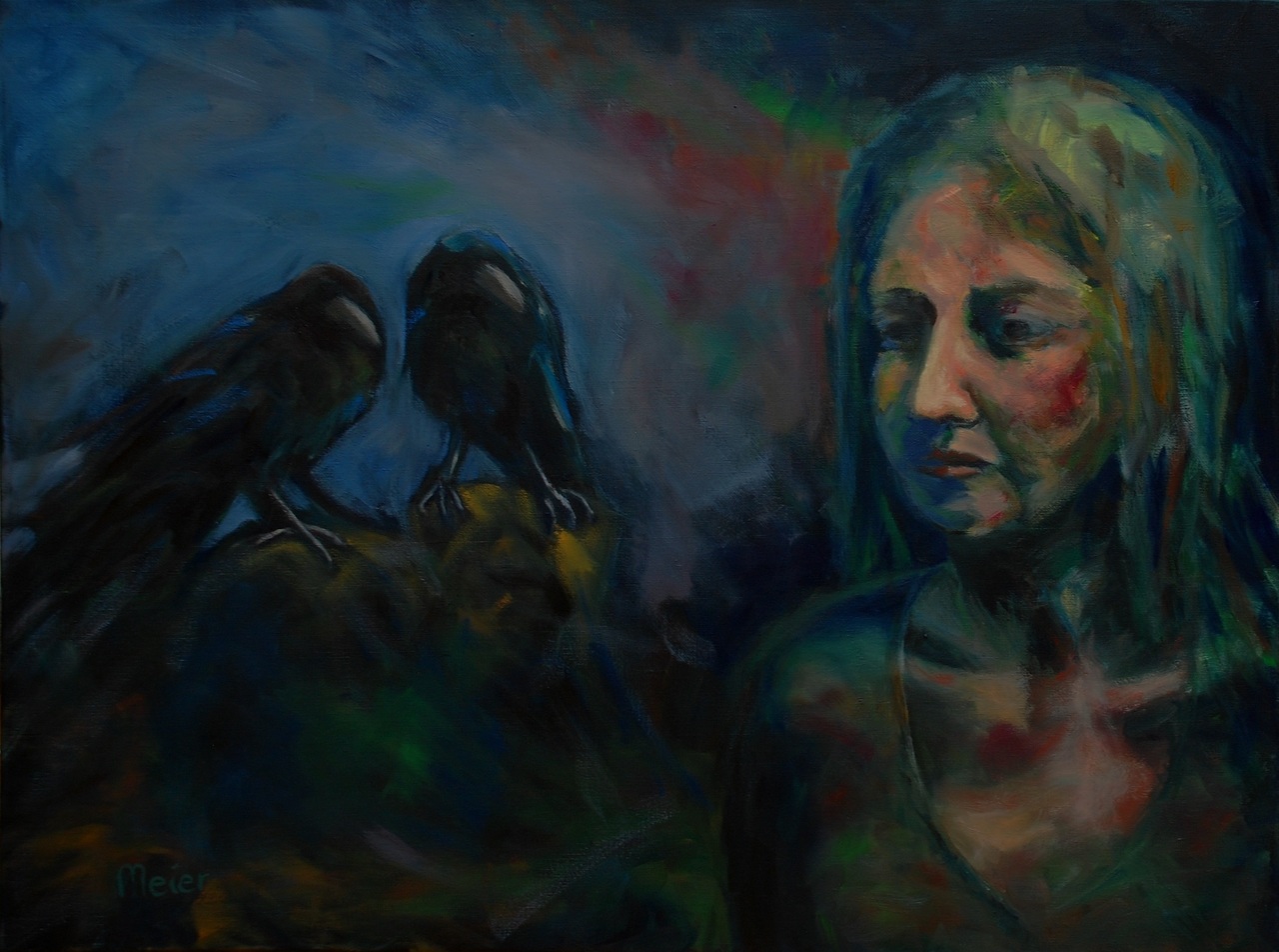 Vrouw Portret Woman Oil Olieverf Portrait Nacht Donker Geheimzinnig Raven Raaf Dark Night Mysterious Crows Crow
