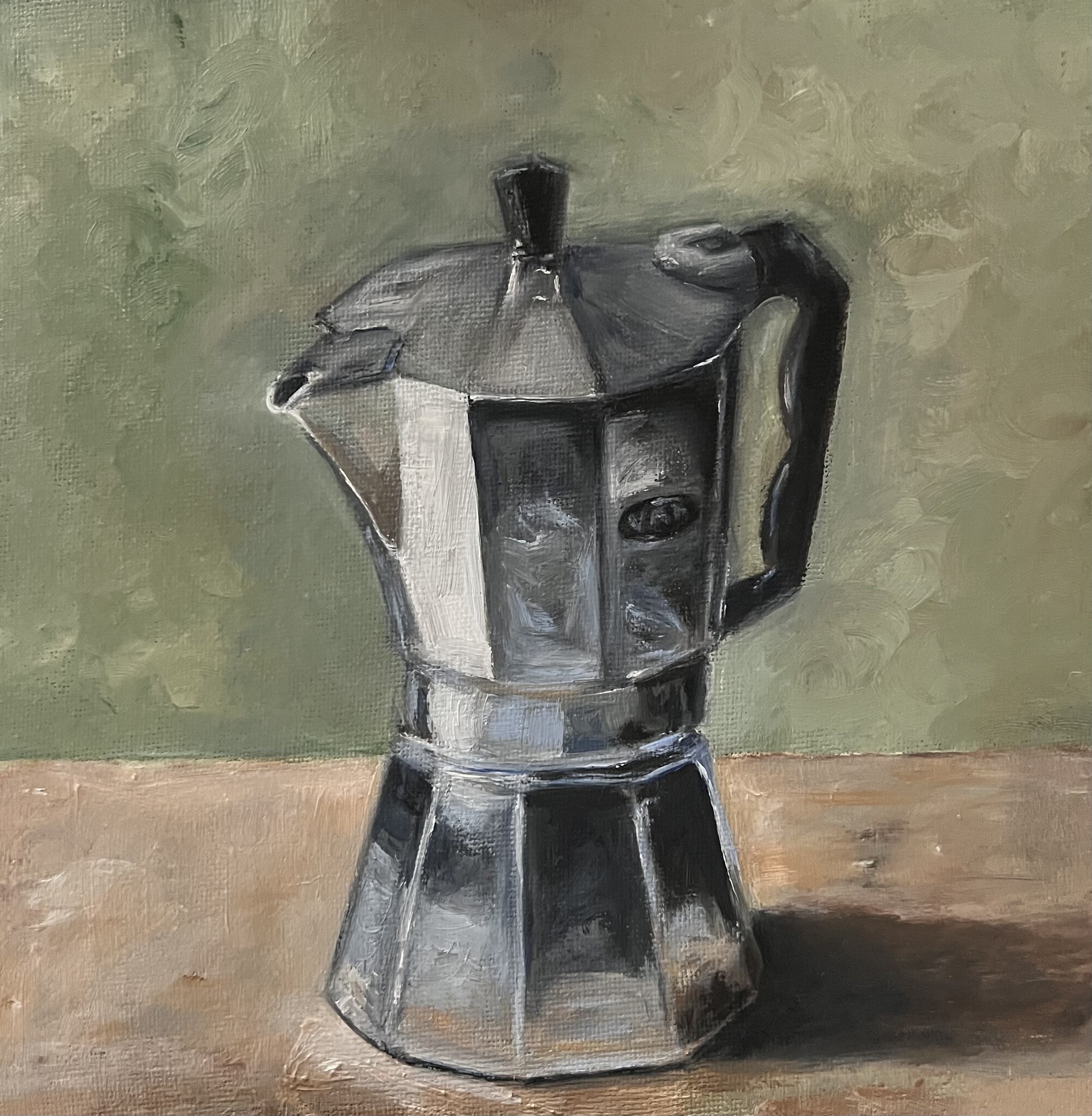 Canvas Realistisch Olieverf Stilleven Koffie Koffiepot Voorwerp Huiselijk Vertraging Coffee Penseelstreken Alledaags Percolator Kleinemomenten
