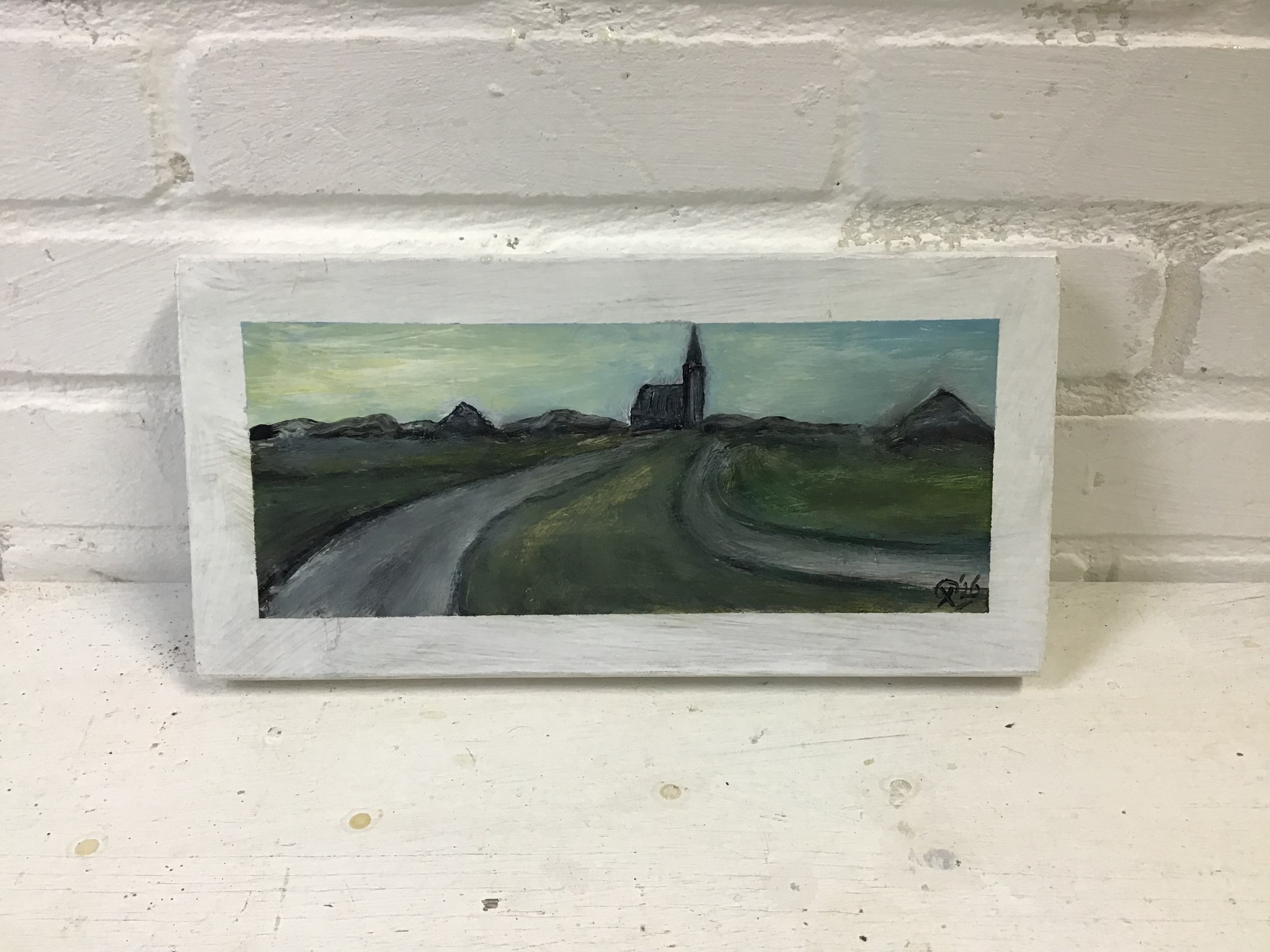 Texels werk 15 x 30 x 2 cm. Titel: "Texels tegenlicht". Een werkje met minder kleur dan ik gewend ben, maar ik vond het heel verfrissend om te maken.