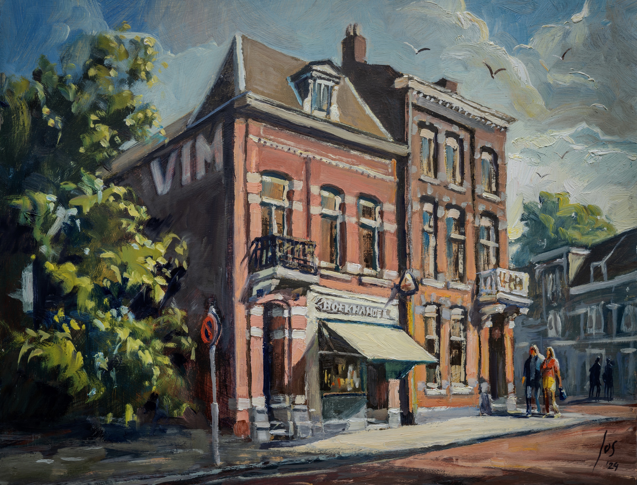 dit schilderij is als sticker aangebracht op het electriciteitskastje naast dit pand in de Brugstraat te Roosendaal