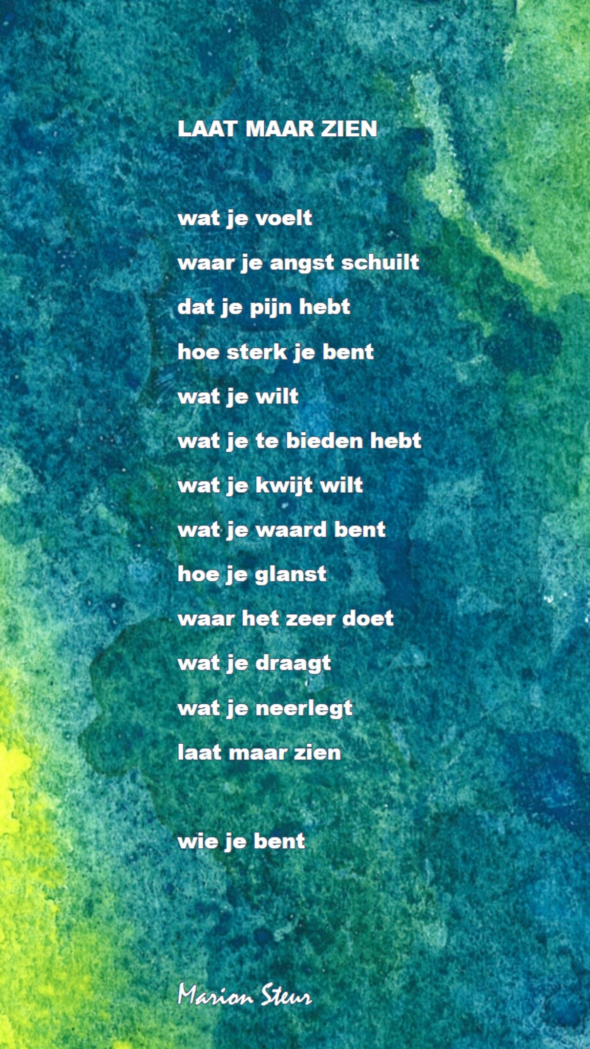 Kwetsbaarheid is de grootste kracht. Gedicht ter gelegenheid van Poëzieweek 2026 met het thema metamorfose. Verkrijgbaar in beperkte oplage in formaat naar kezue in maatverhouding 16 x 9.