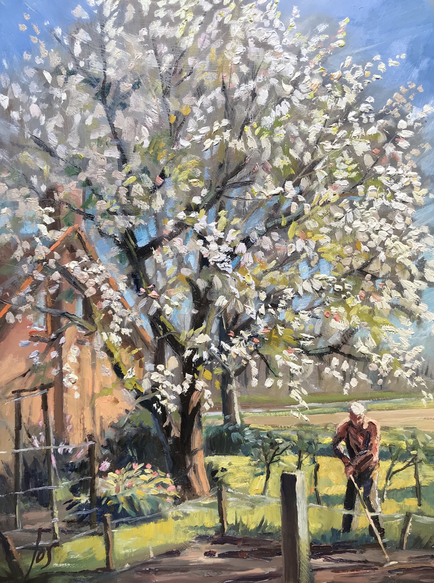 kersenbloesem in olieverf