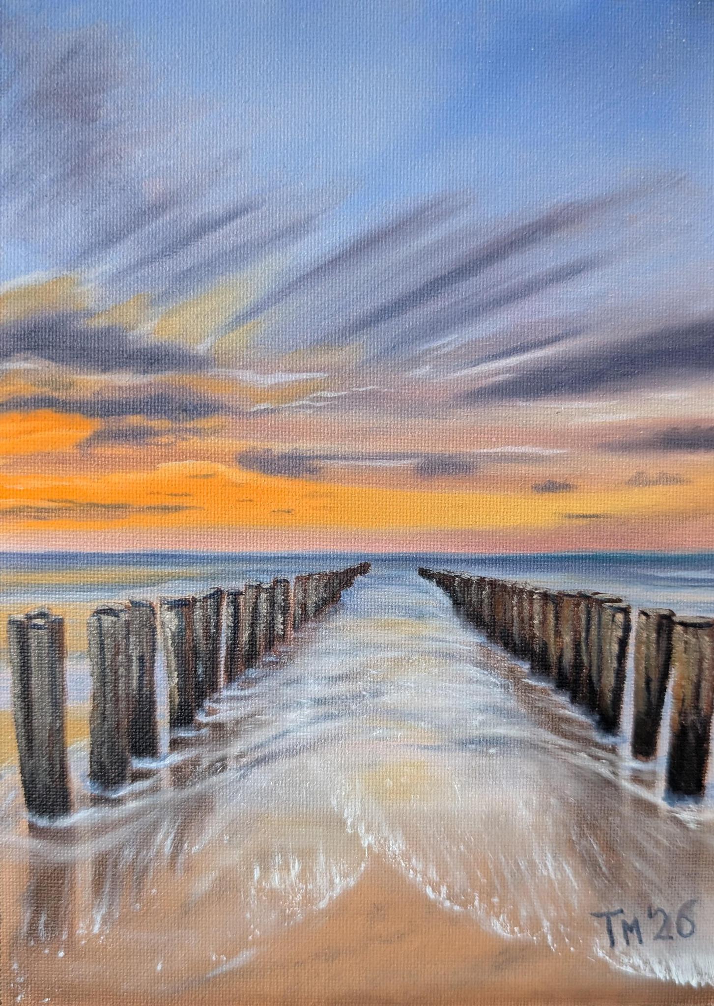 Paalhoofden van Westkapelle Zeeland. Geschilderd van referentiefoto.
