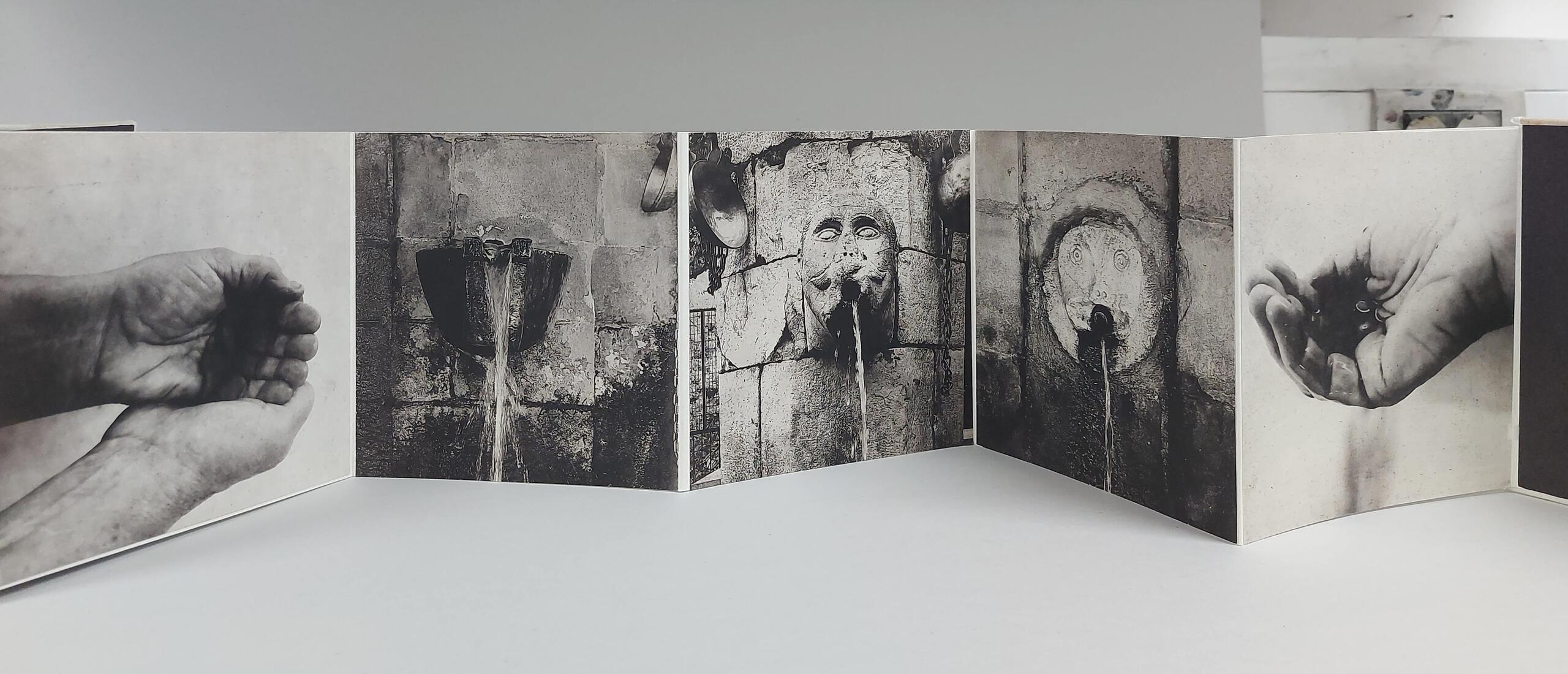 Dit boek is gemaakt tijdens mijn werkverblijf in de grafische studio Engramme in Luxemburg. Het thema is handen, en water. Of geen water en je hand ophouden daarvoor. In deze periode is de Gaza genocide in volle gang en het is niet meer dan logisch dat dit mijn thema is. De technierk is foto-ets en vernis-mou.