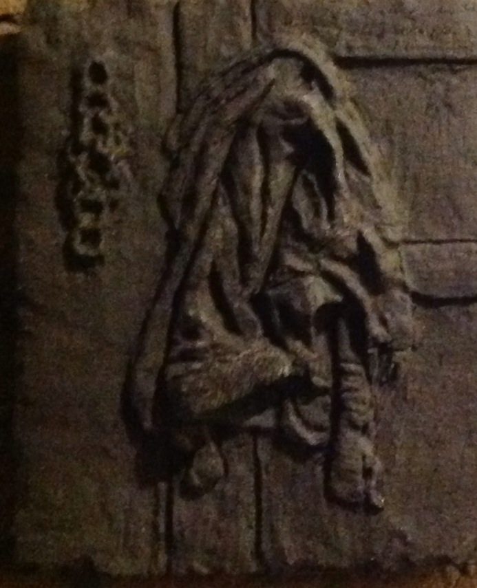 Reliëf van donkere klei met structuur. Gebaseerd op een uitsnede van een schilderij van Jopie Huismans.