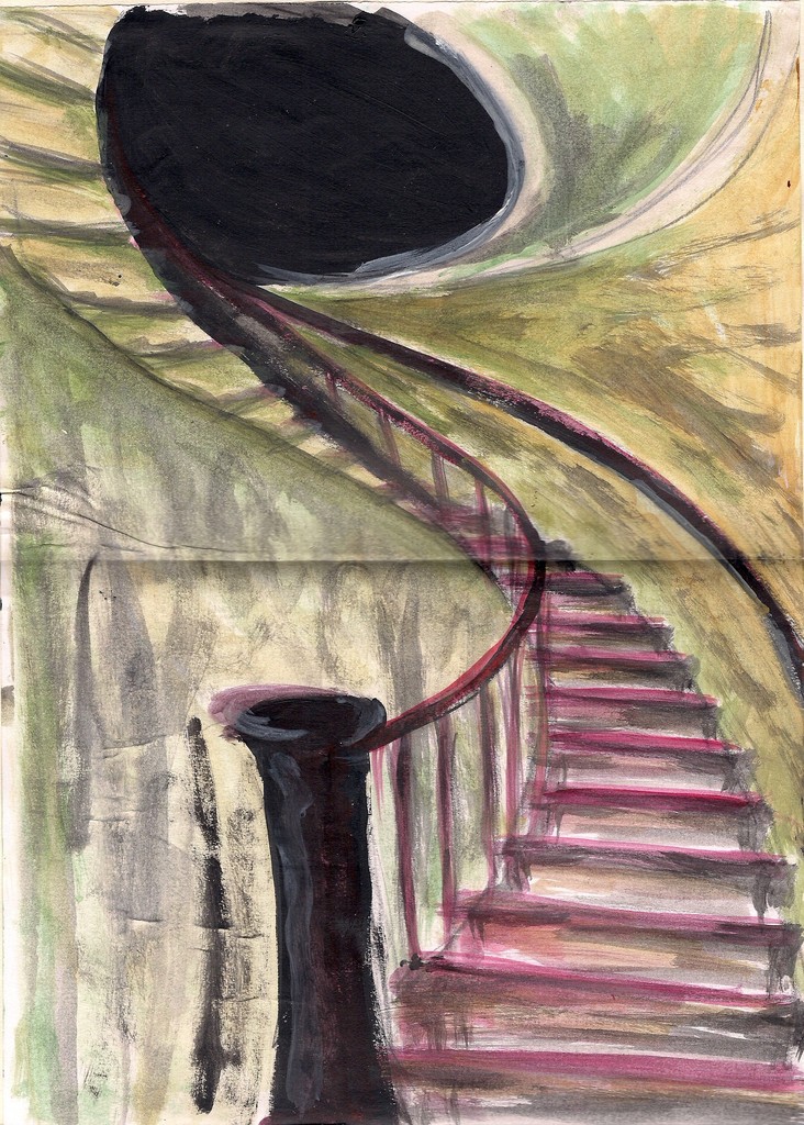 Mark Manders Villa Trap Trappenhuis Wenteltrap Perspectief Staircase Stairs Perspective Geel Zwart Groen Rood Yellow Black Red Green Aquarel Aquarell