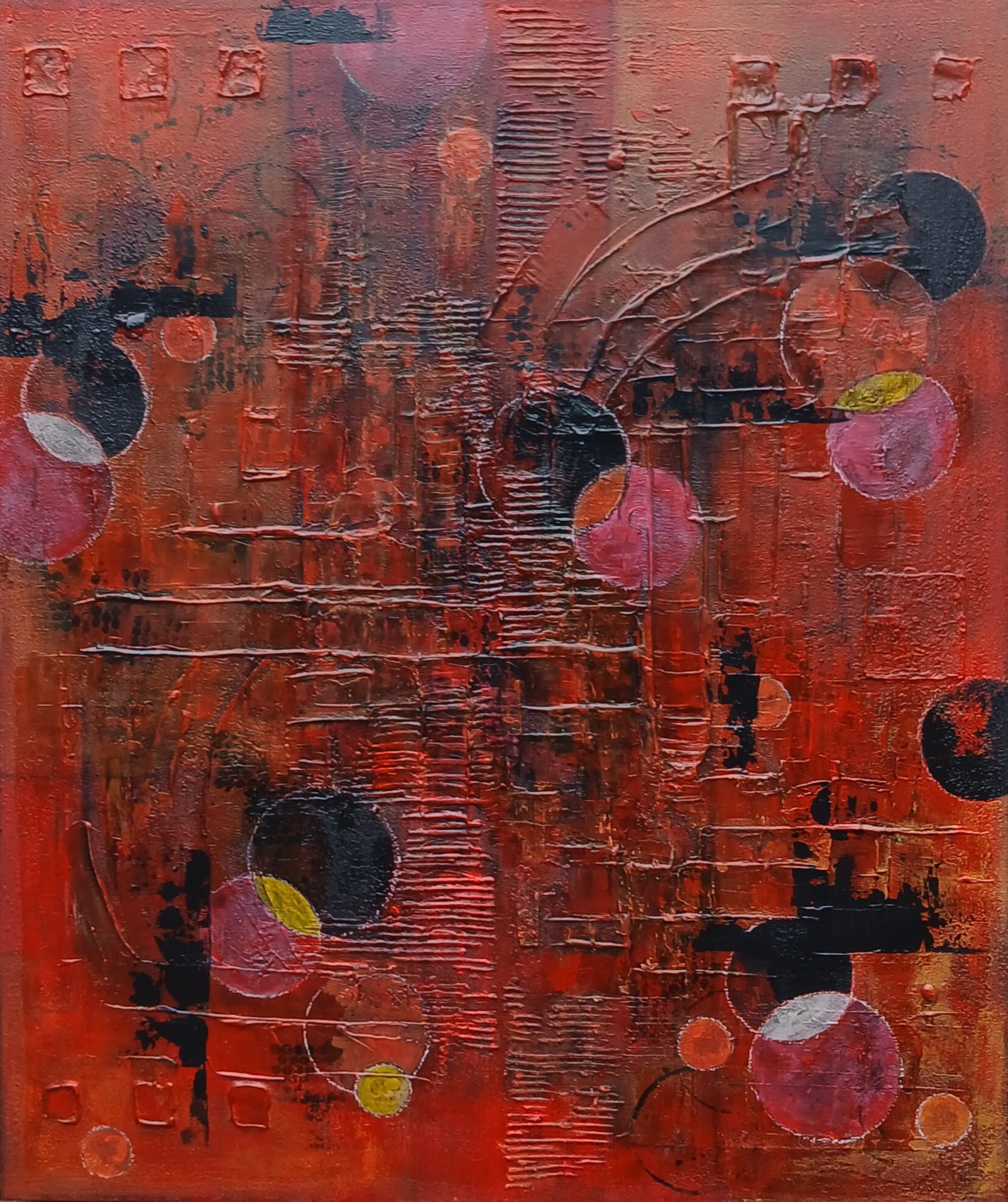 (1952) autodidact. Mijn werk is abstract, vaak monotoon van kleur, maar soms ook kleurrijk. Ik houd van gelaagdheid, met als resultaat een rijkdom aan diepte. Het totaal dient rust uit te stralen.