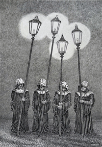 ",,,een dag zonder tekenen is een verloren dag..." In mijn vrije werk maak ik vrijwel uitsluitend zeer fijn uitgewerkte pentekeningen. De wereld van zwart-wit boeit me uitermate.