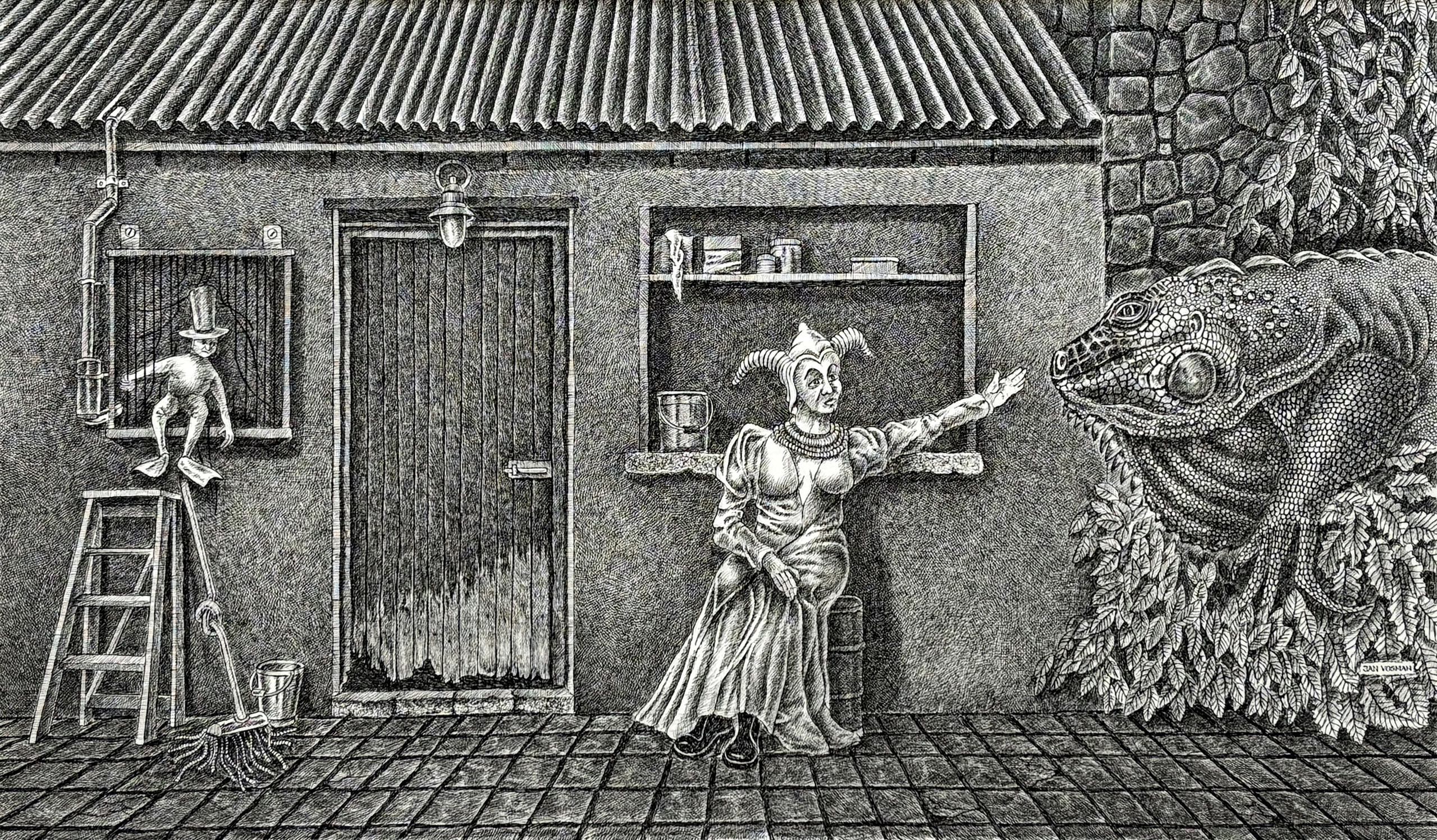 ",,,een dag zonder tekenen is een verloren dag..." In mijn vrije werk maak ik vrijwel uitsluitend zeer fijn uitgewerkte pentekeningen. De wereld van zwart-wit boeit me uitermate.