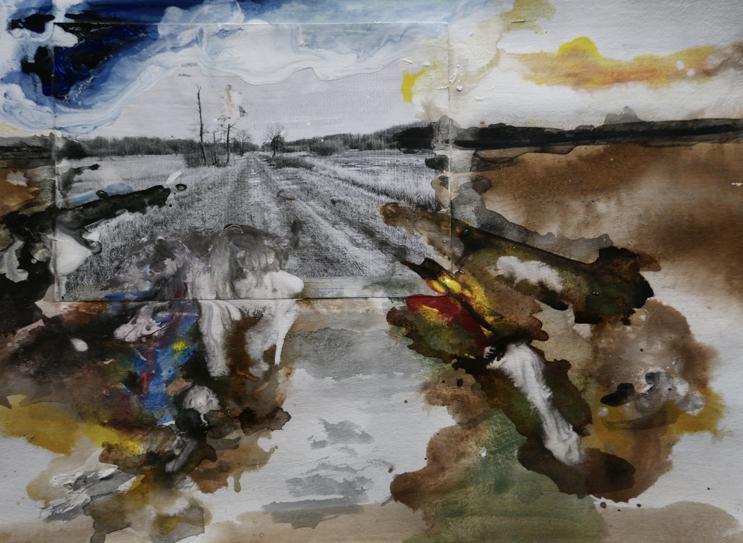 Thema in mijn werk is vaak de horizon. Het landschap dat voor je voeten ligt waar de horizon je uitnodigt om na te denken waar je vandaan komt en waar je heen gaat.