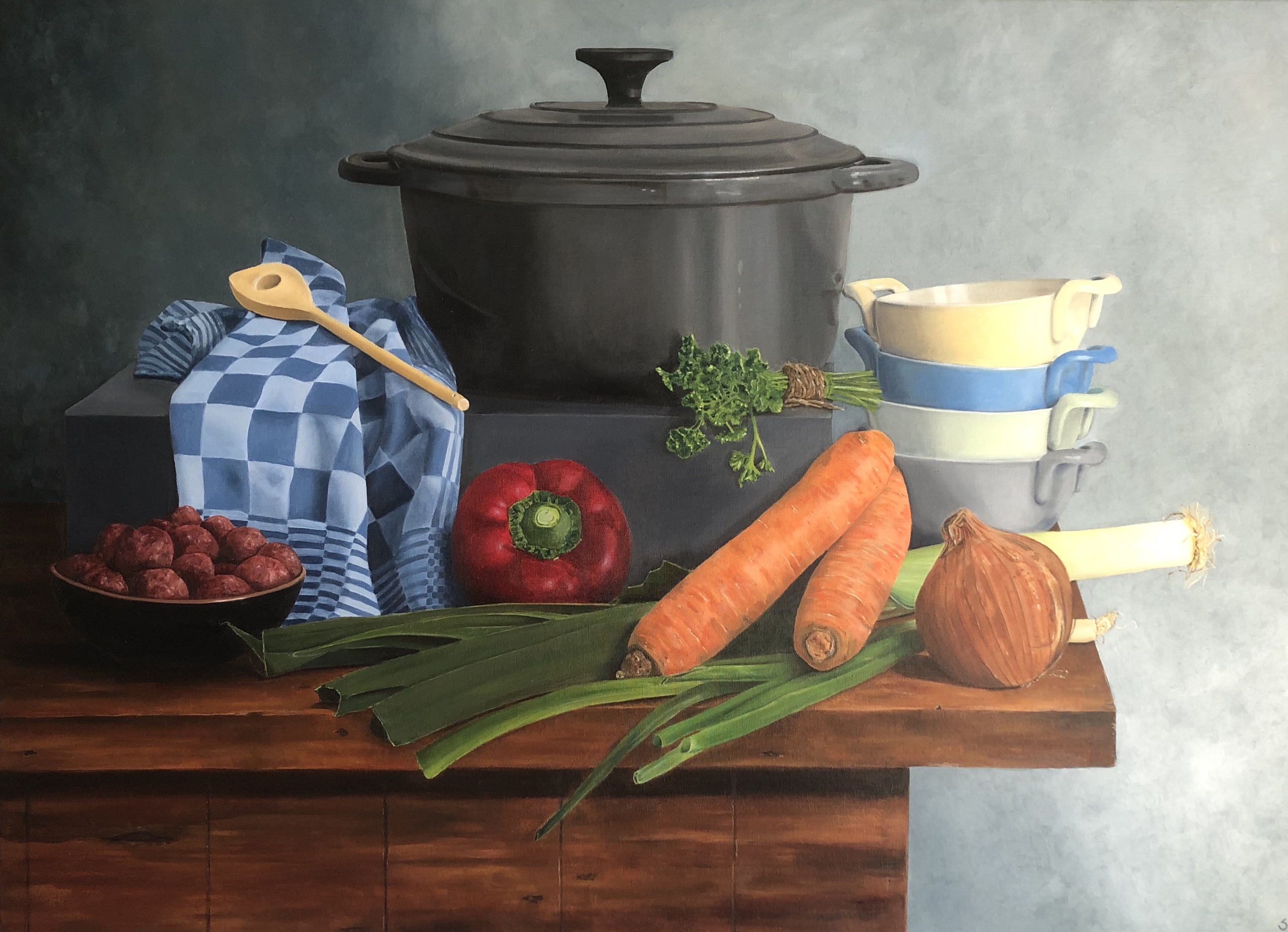 Realistisch Olieverf Stilleven Keuken Groente Soep
