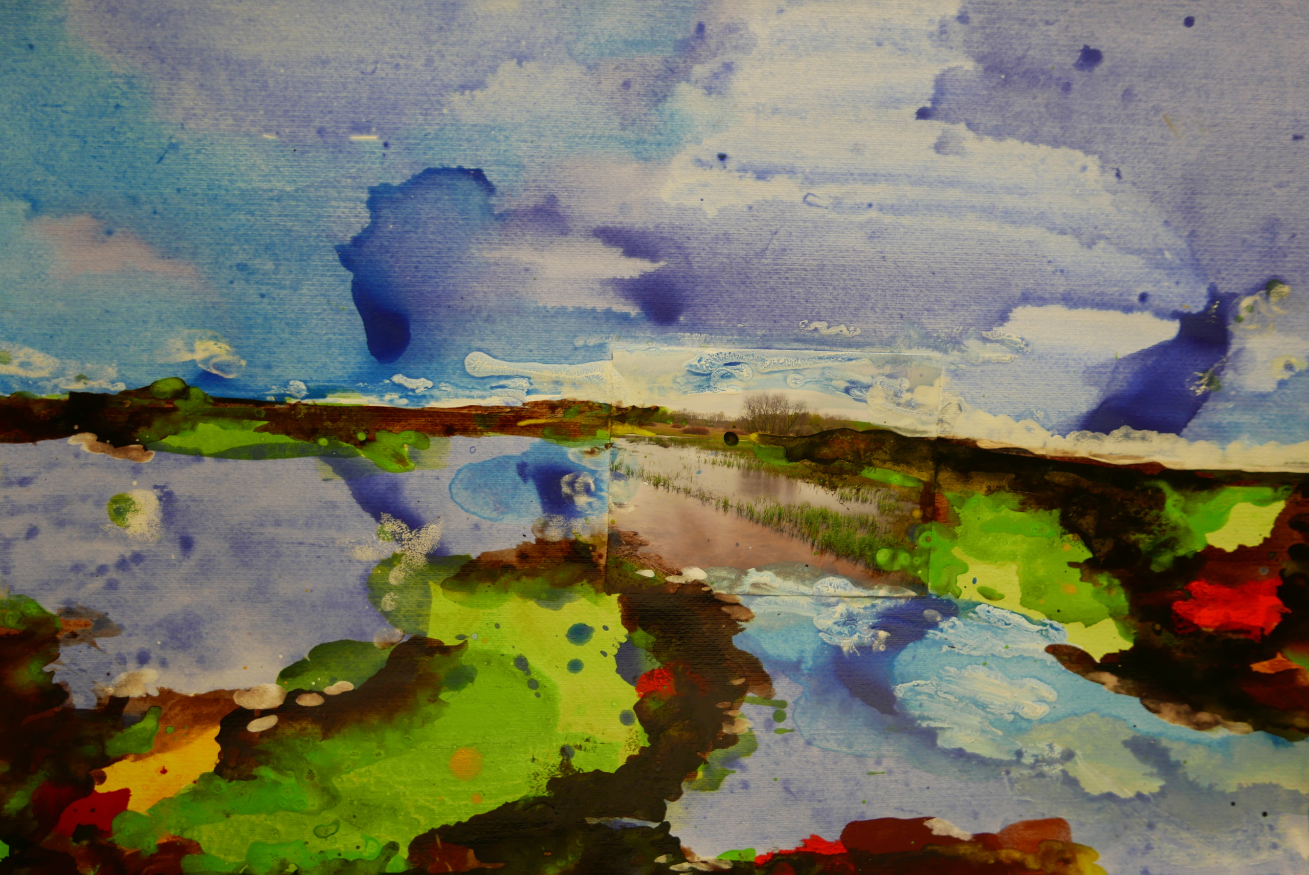 Thema in mijn werk is vaak de horizon. Het landschap dat voor je voeten ligt waar de horizon je uitnodigt om na te denken waar je vandaan komt en waar je heen gaat.