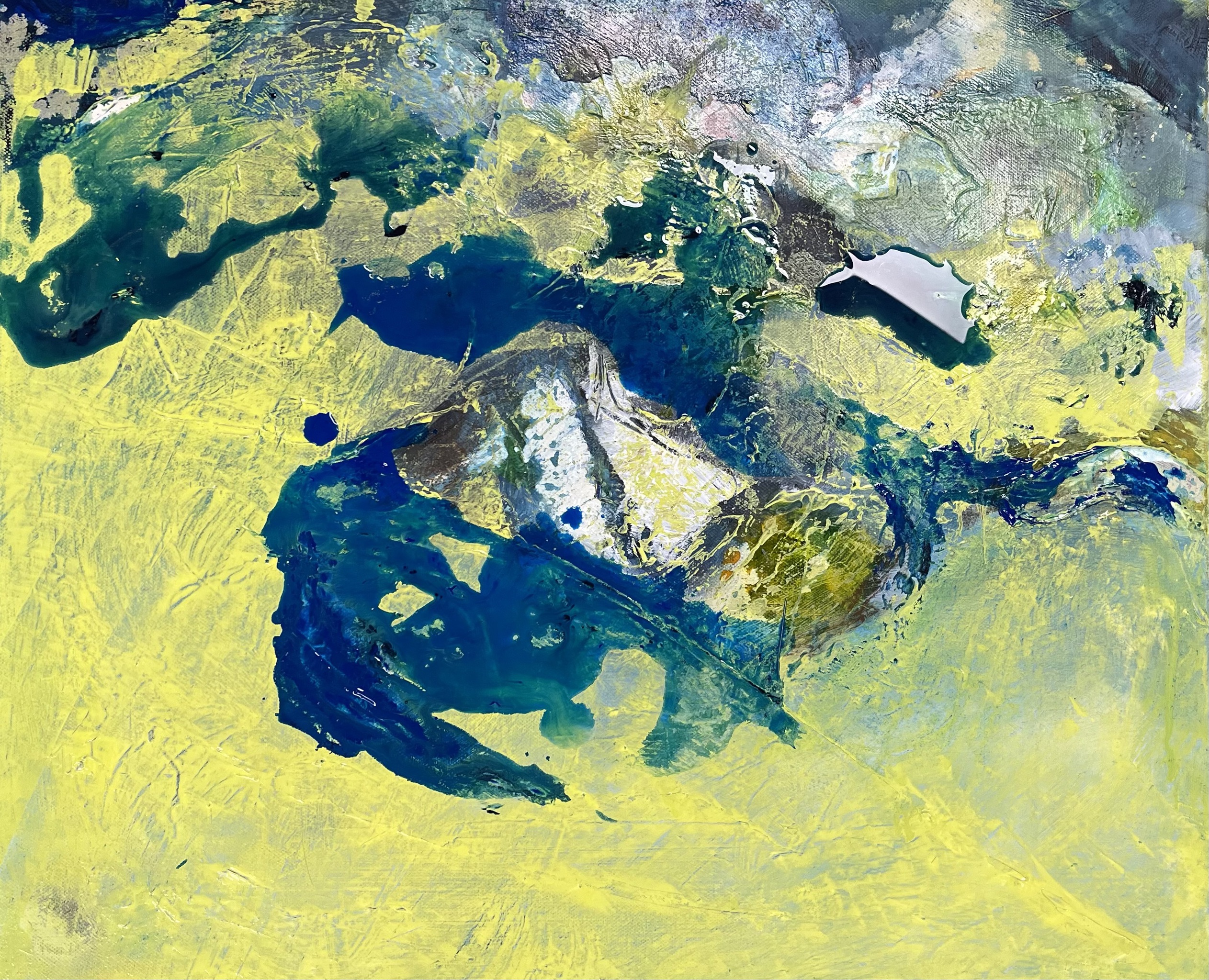 ANJA TEUNISSE Ik schilder beelden die ontstaan vanuit mijn binnenste. Onbewust is de natuur altijd mijn inspiratiebron, beelden van het hooggebergte zitten vaak voor op mijn netvlies.