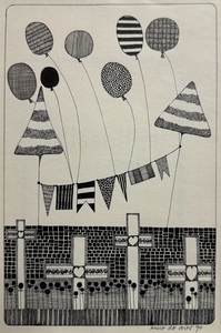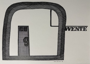 Pentekeningetje. Kroontjespen, penseel, Oost-Indische inkt, ivoorkarton.