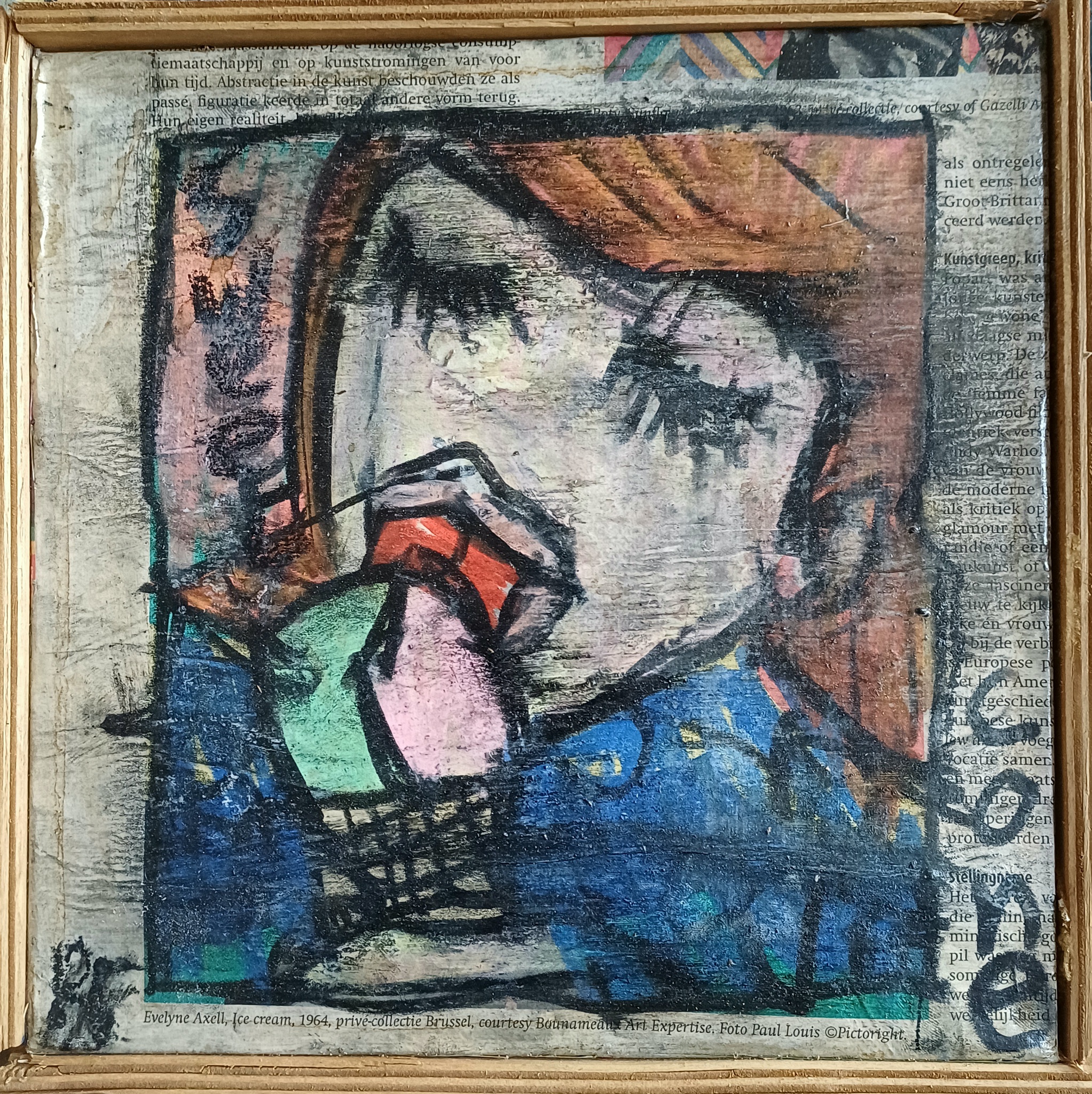 Een dame die geniet van haar sweet cone. wie houd er nu niet van ijs? collage met de kunstkrant.