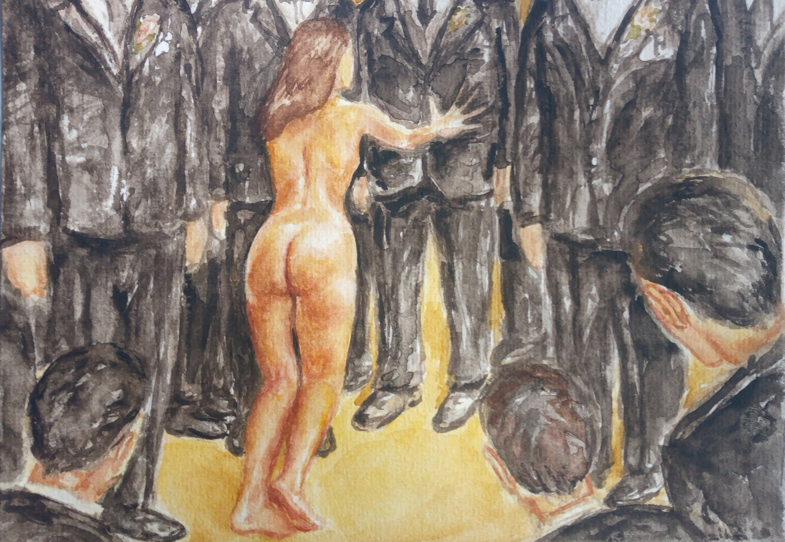 Naakte vrouw Temidden van een Groep Heren