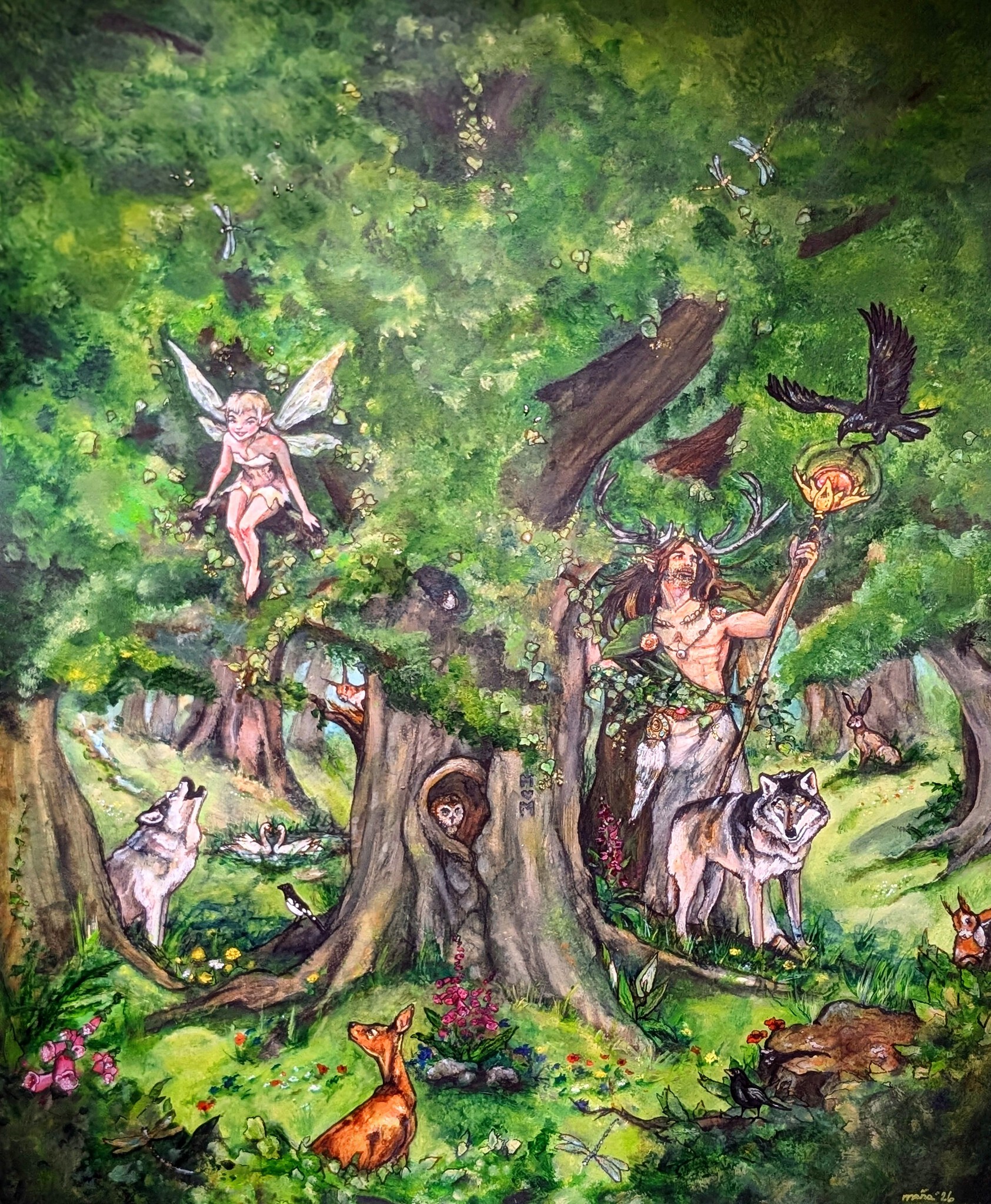 Linde Boom Ree Fairy Cernunnos Uil Eekhoorn