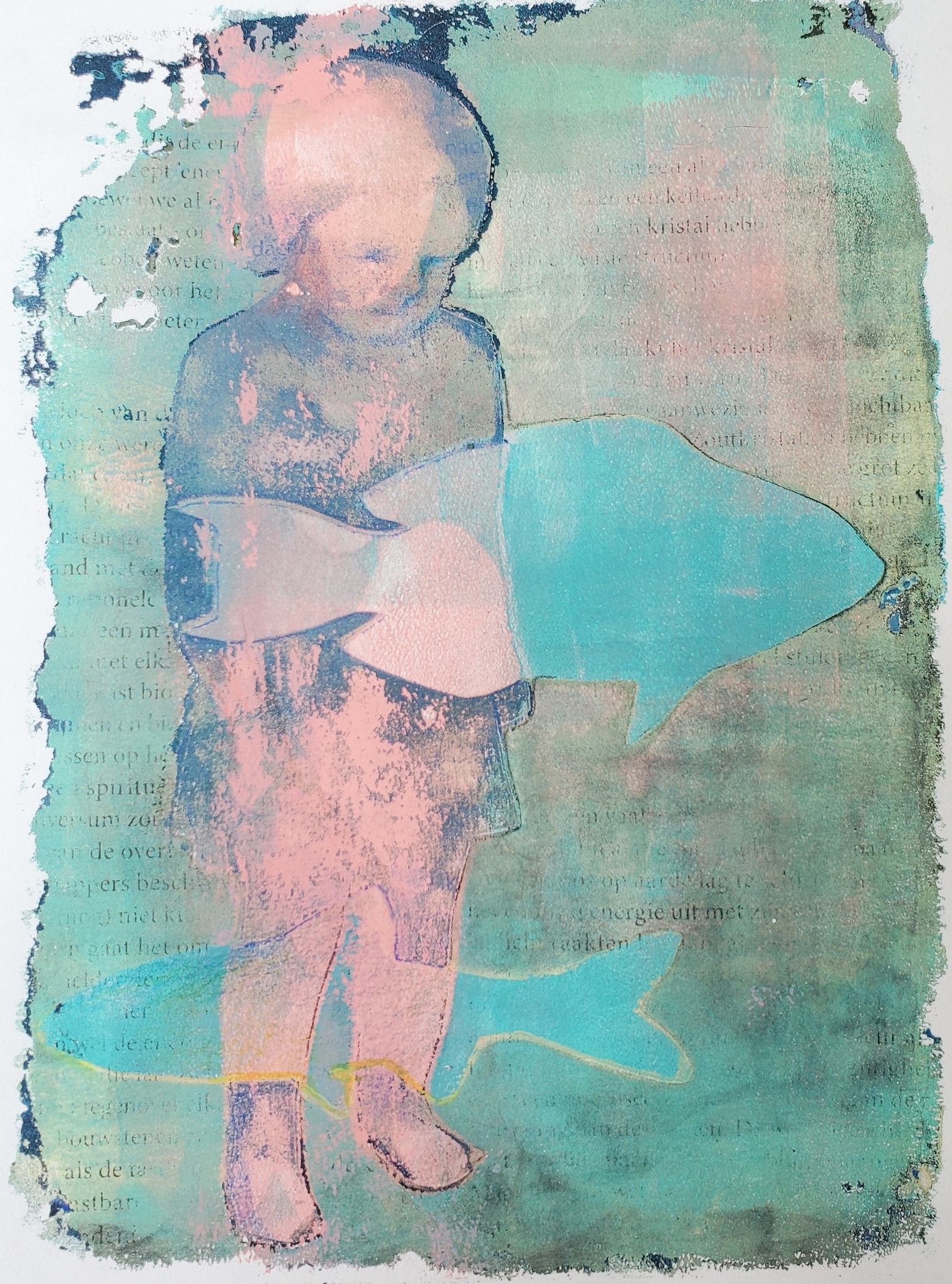 Gelli Plate Gelprint Druktechnieken Onderwater Vissen Meisje