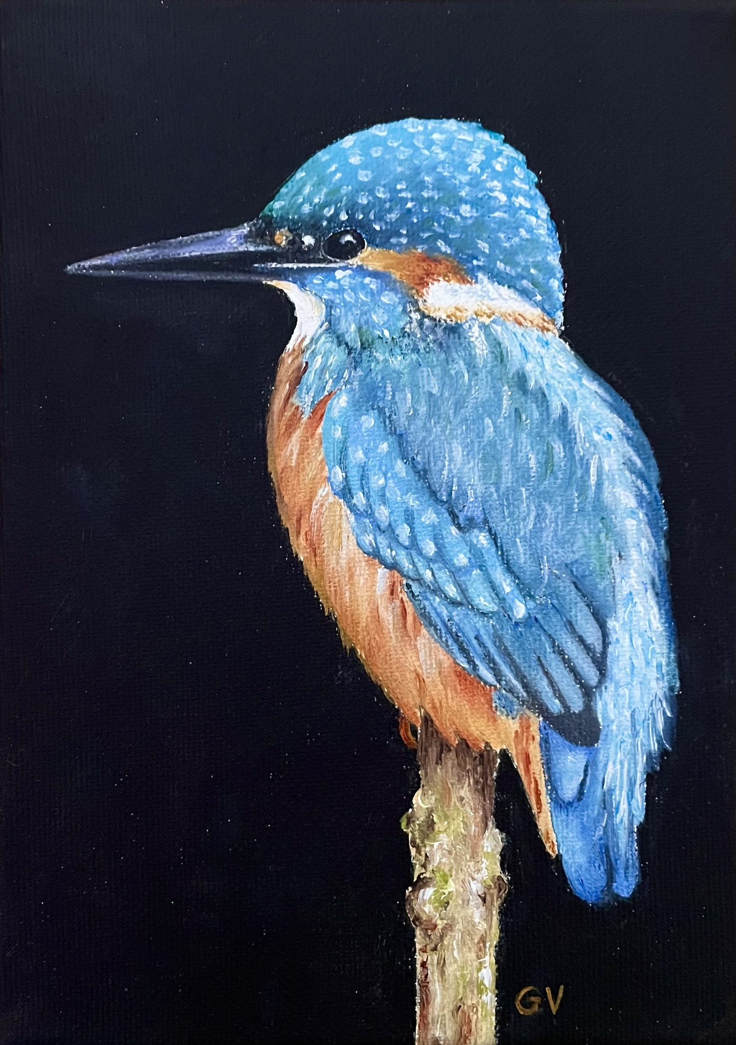 Ijsvogel Vogel Olieverf Natuur Blauw Wildlife Bird Realistisch Miniatuur
