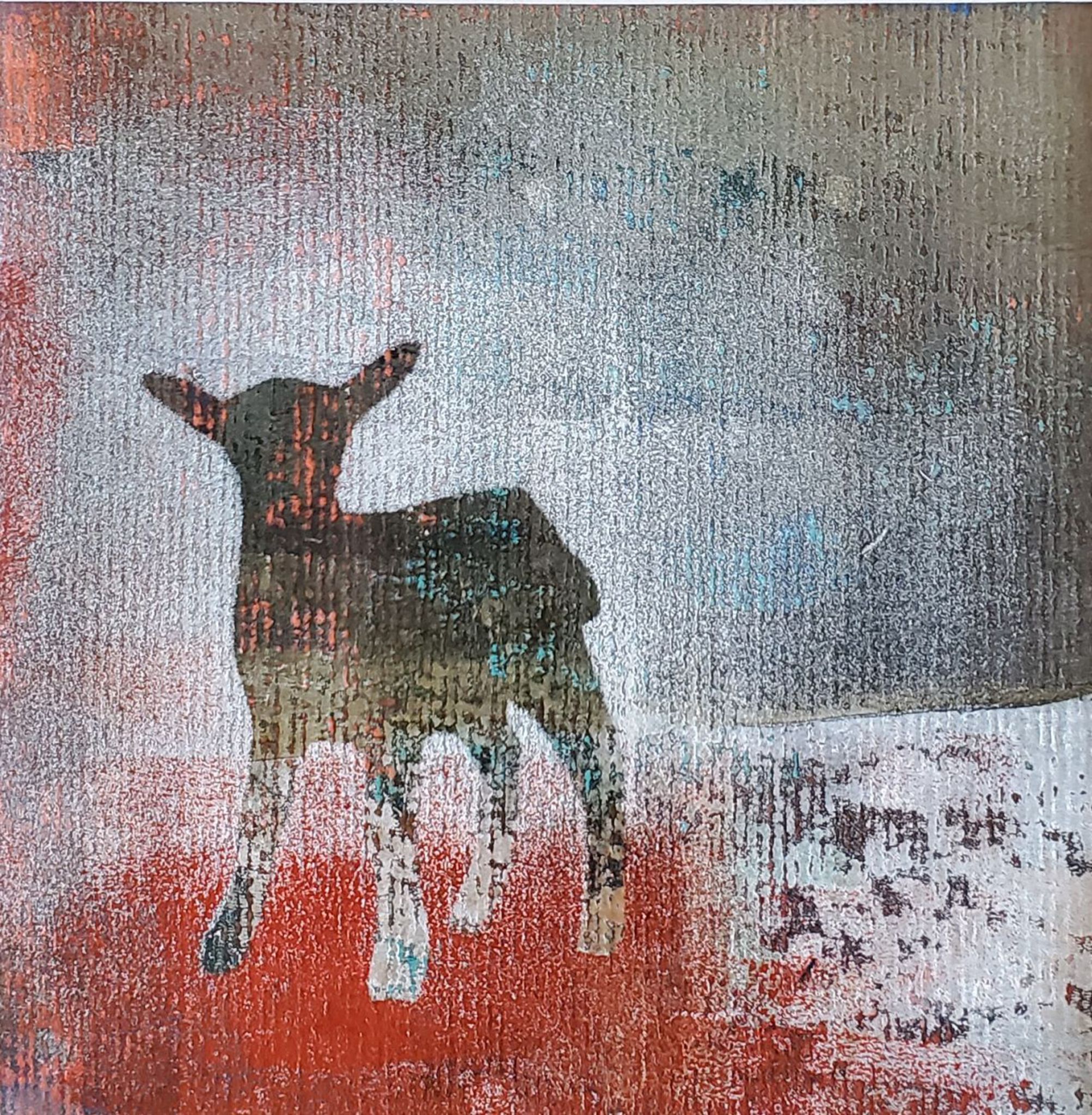 Sjabloondruk van een geitje op een uitrolvel van gelprint