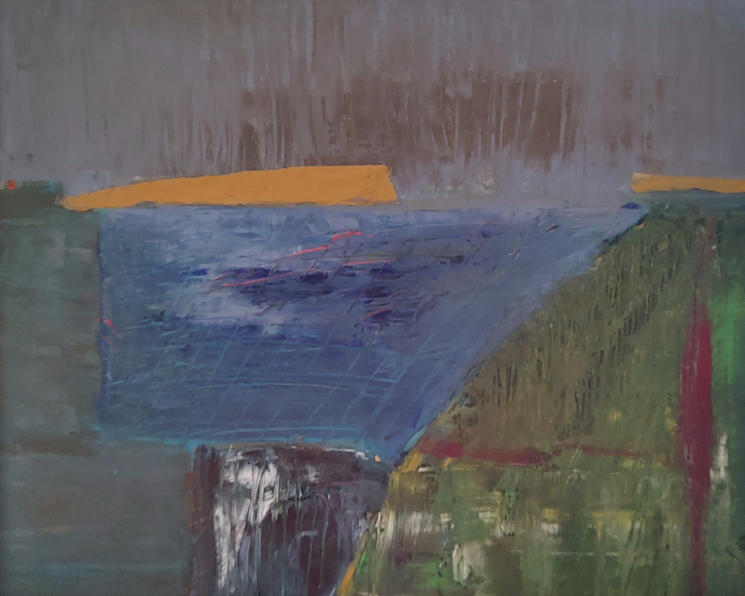 Olieverf en tape op canvaspaneel in lijst 40 bij 50