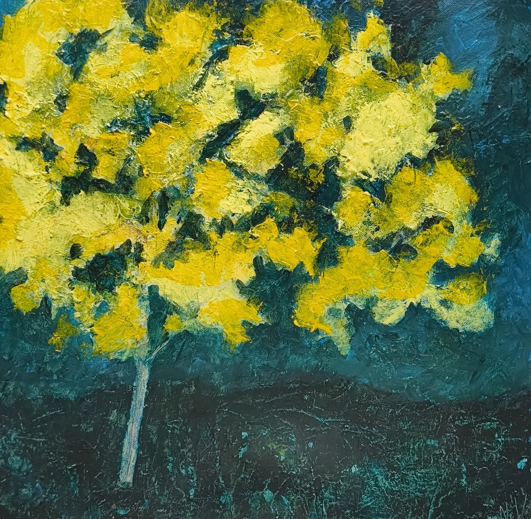 'Gele boom in donker' wil niet alleen mooi zijn, maar ook een betekenis dragen.