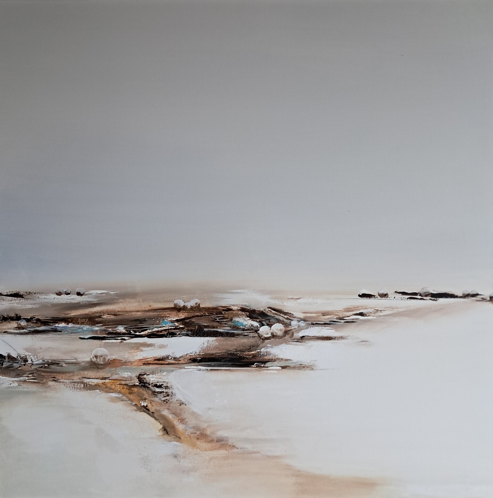 Mixed Media op doek met als basis acryl. 80 x 80 x 2 cm exclusief stalen lijst