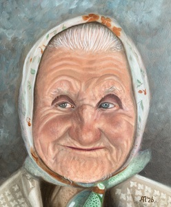 Een warm portret waarin elke rimpel een verhaal draagt. De zachte blik en voorzichtige glimlach stralen kracht, liefde en geleefde tijd uit.