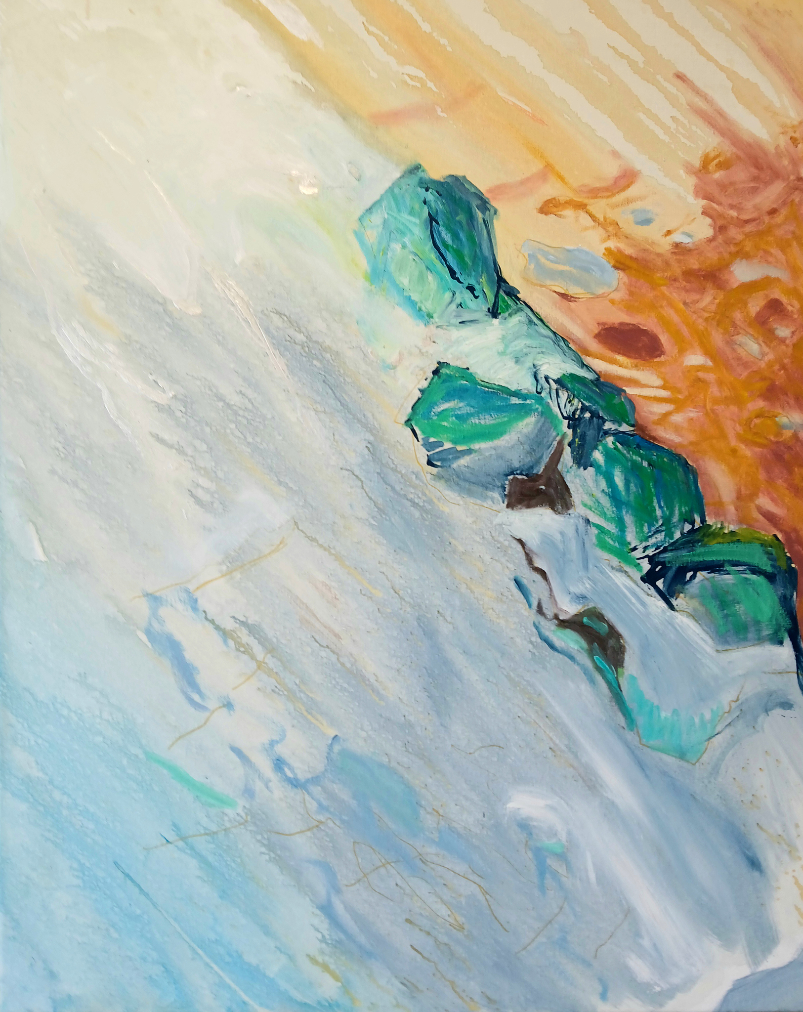 Sophie Bekkering toont in haar schilderijen en keramiek de grootse natuur. Begonnen vanuit wandelingen door de Gelderse bossen is ze inmiddels de bomen nagereisd tot aan en over de boomgrens. De ongerepte alpine ruimte waarin bomen, rotsen en water figureren.is haar speelveld.In haar schilderijen verbeeldt ze de onderliggende krachten van deze stille omgeving door middel van haar expressieve toetsen en levendige kleurcontrasten.