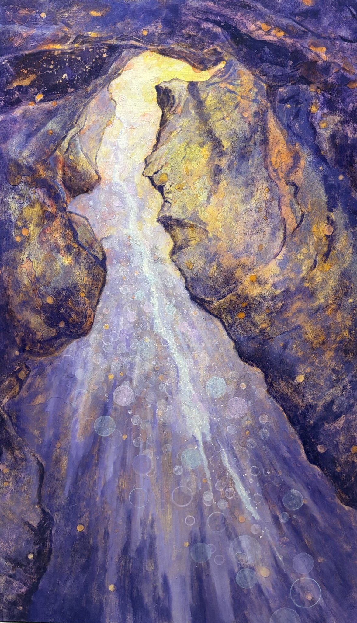 Schilderij Geel Paars Water Gezichten Licht Liefde Olieverf Love Light Aarde Spiritualiteit Earth Energie Spirituality Waterval Orbs Marloesbuigelboering