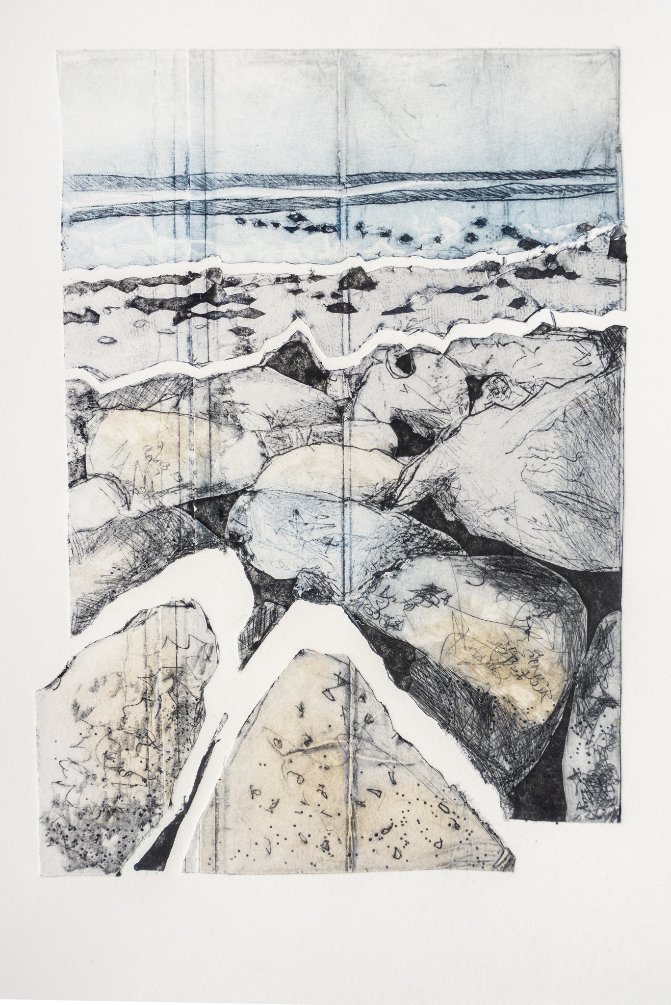 Landschap Stenen Wad Water Grafiek Kartondruk Papier Unicum