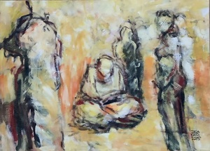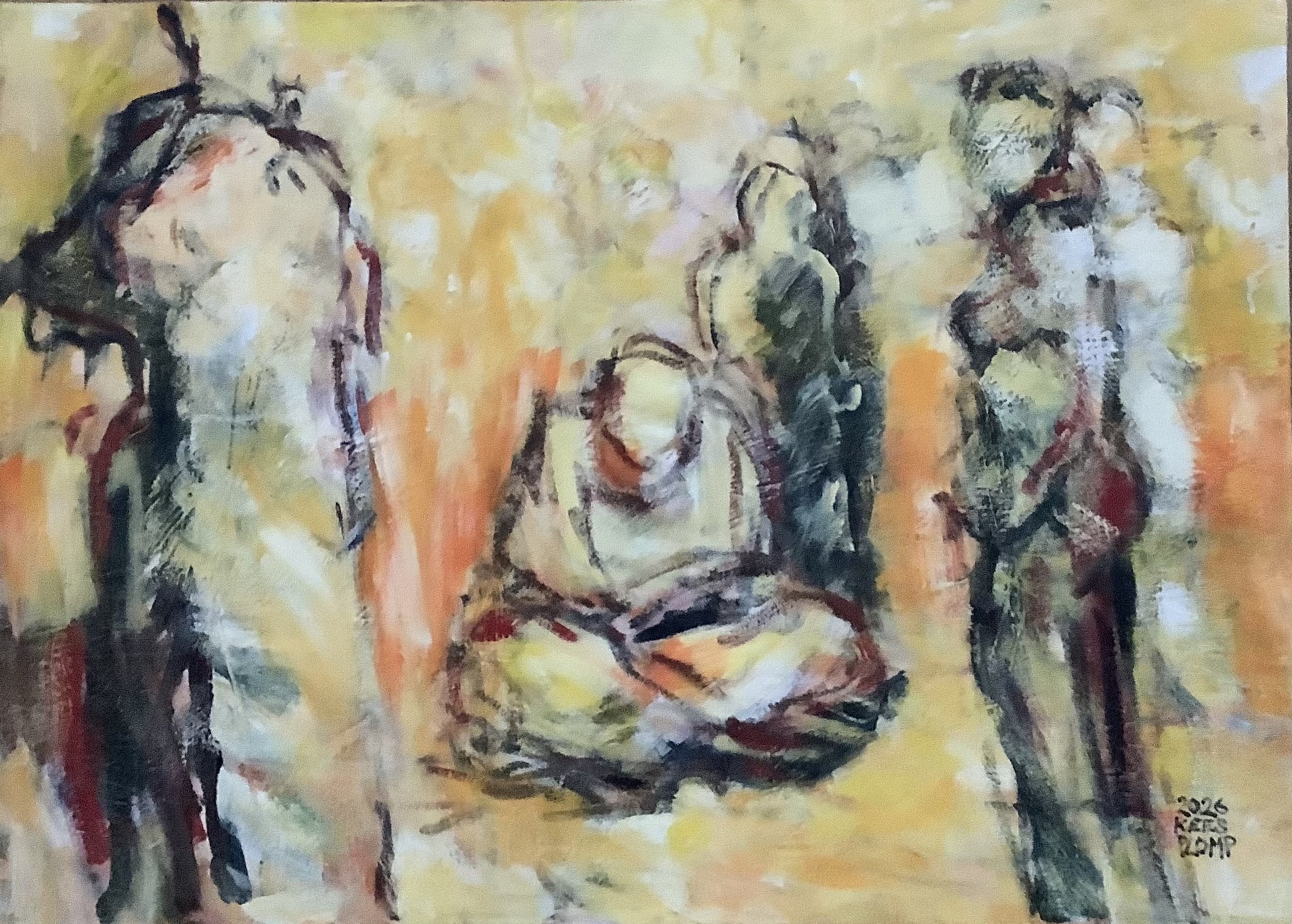 Kees Plomp, Oud-Beijerland, 1949. Beeldend kunstenaar, schilderen, aquarelleren en tekenen. Na de middelbare school ging ik naar de Rotterdamse kunstacademie. Wanneer een onderwerp mij boeit levert dit meestal een reeks werkstukken op in verschillende materialen en van diverse afmetingen. In het proces van eerste schets naar schilderij wordt de natuurgetrouwe weergave minder belangrijk. In de loop van de jaren heb ik meerdere thema's zo uitgewerkt. Voor het meest recente werk zijn tijdens reizen gemaakte schetsen vaak het uitgangspunt geweest. Verder is mijn belangstelling voor het sjamanisme een inspiratie.