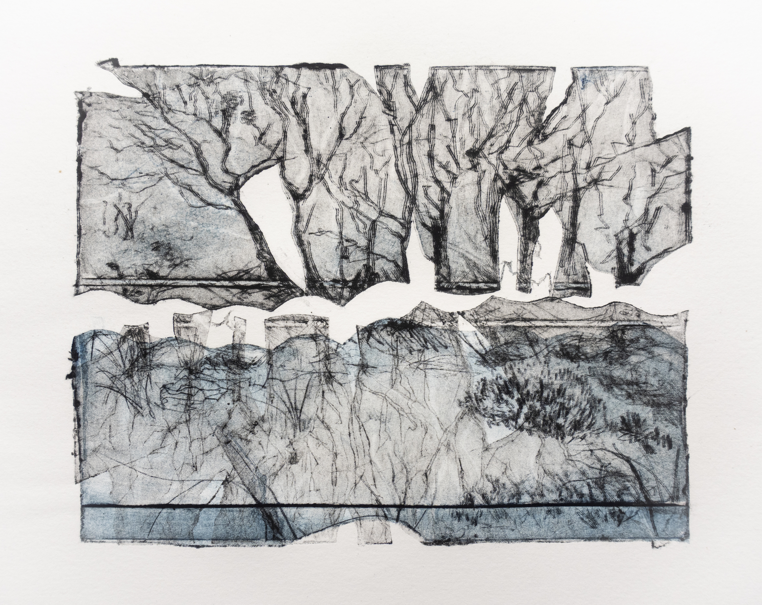 Kartondruk Diepdruk Terschelling Eiland Landscahp Bomen Water Grafiek