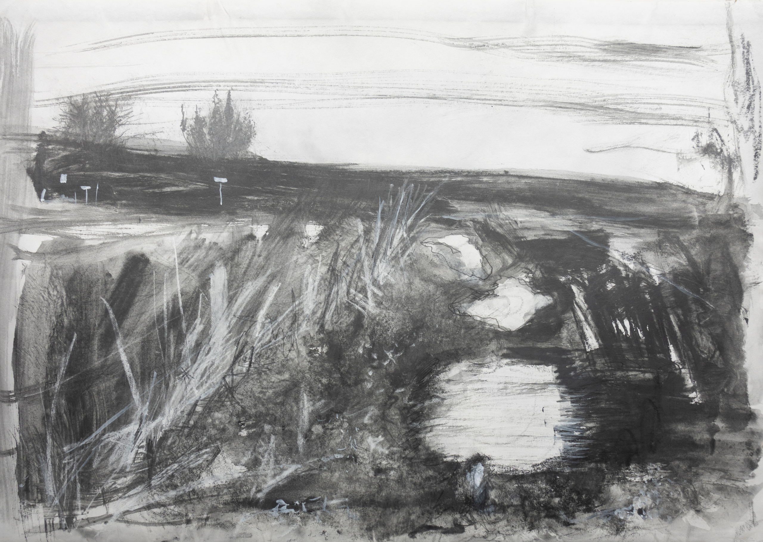 Landschap Water Potlood Tekening Bomen Lucht Zwartwit Grafiet
