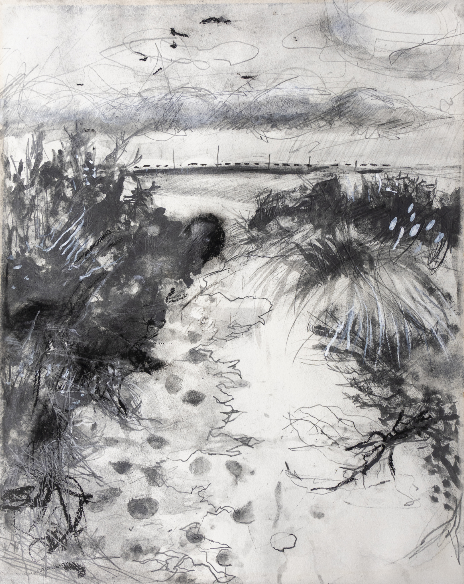 Landschap Duinen Kust Natuur Tekening Potlood Grafiet Zwartwit