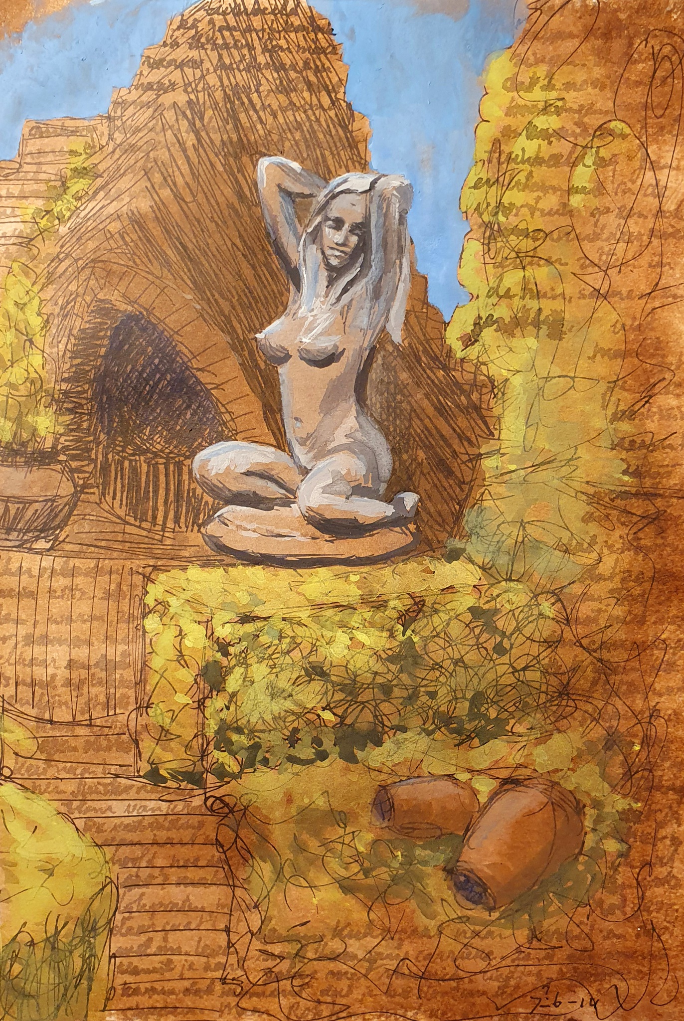 Vrouw Naakt Vaas Beeld Tuin Tuinbeeld Bloot Zittend Stenen Vazen Zitten Pad Beeldend Heggen Heg Paadje Voortuin Heggetjes