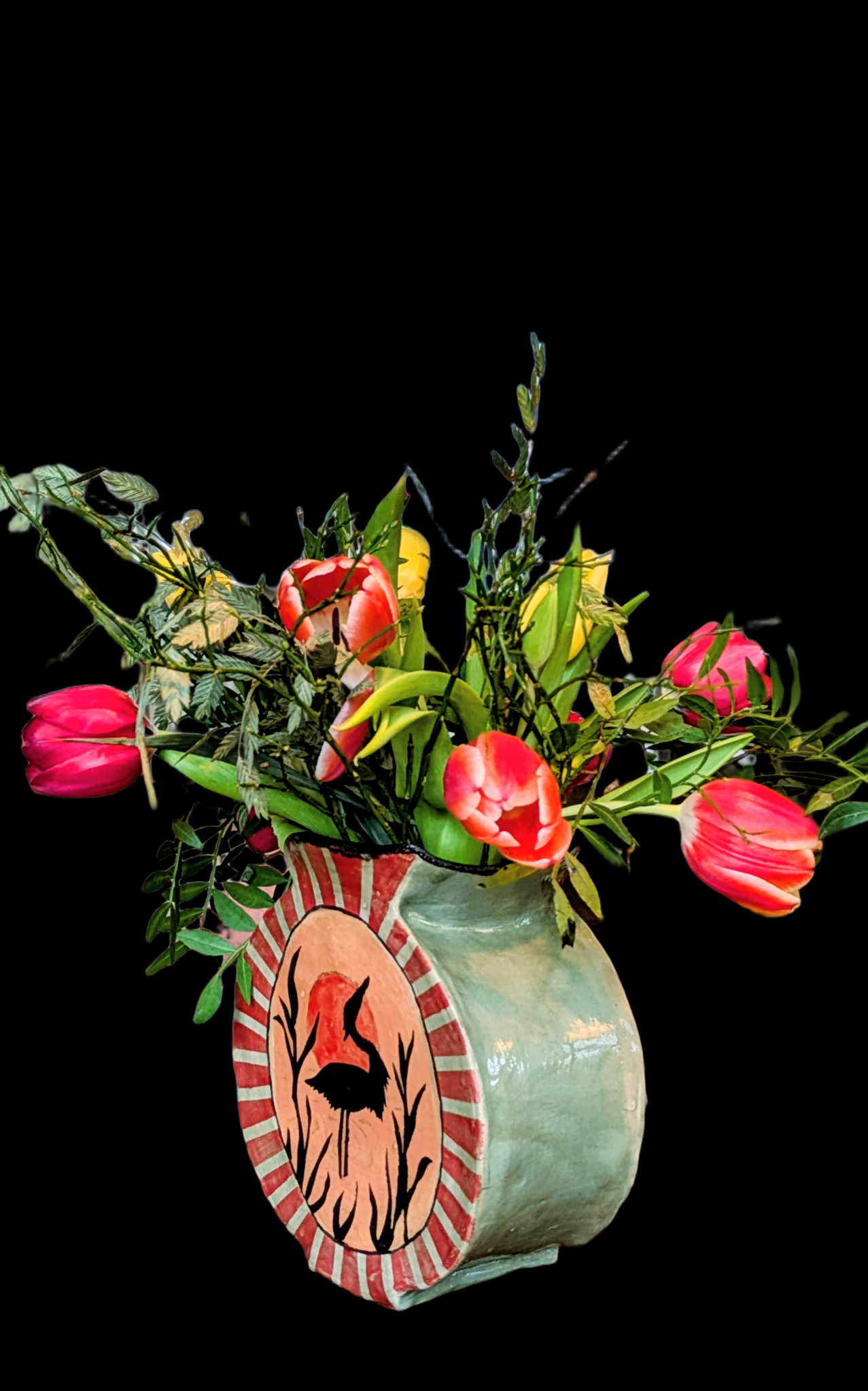 Vaas met sjabloon reiger