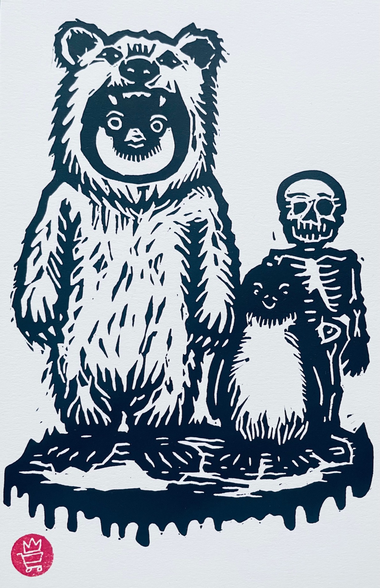 Arctic Noordpool Ijsbeer Pinguïn Print Printmaker Lino Linosnede Linocut Linocutprint Prent Kunstkaart Kaart Rexwinkel Hoogdruk Printisnotdead Rex