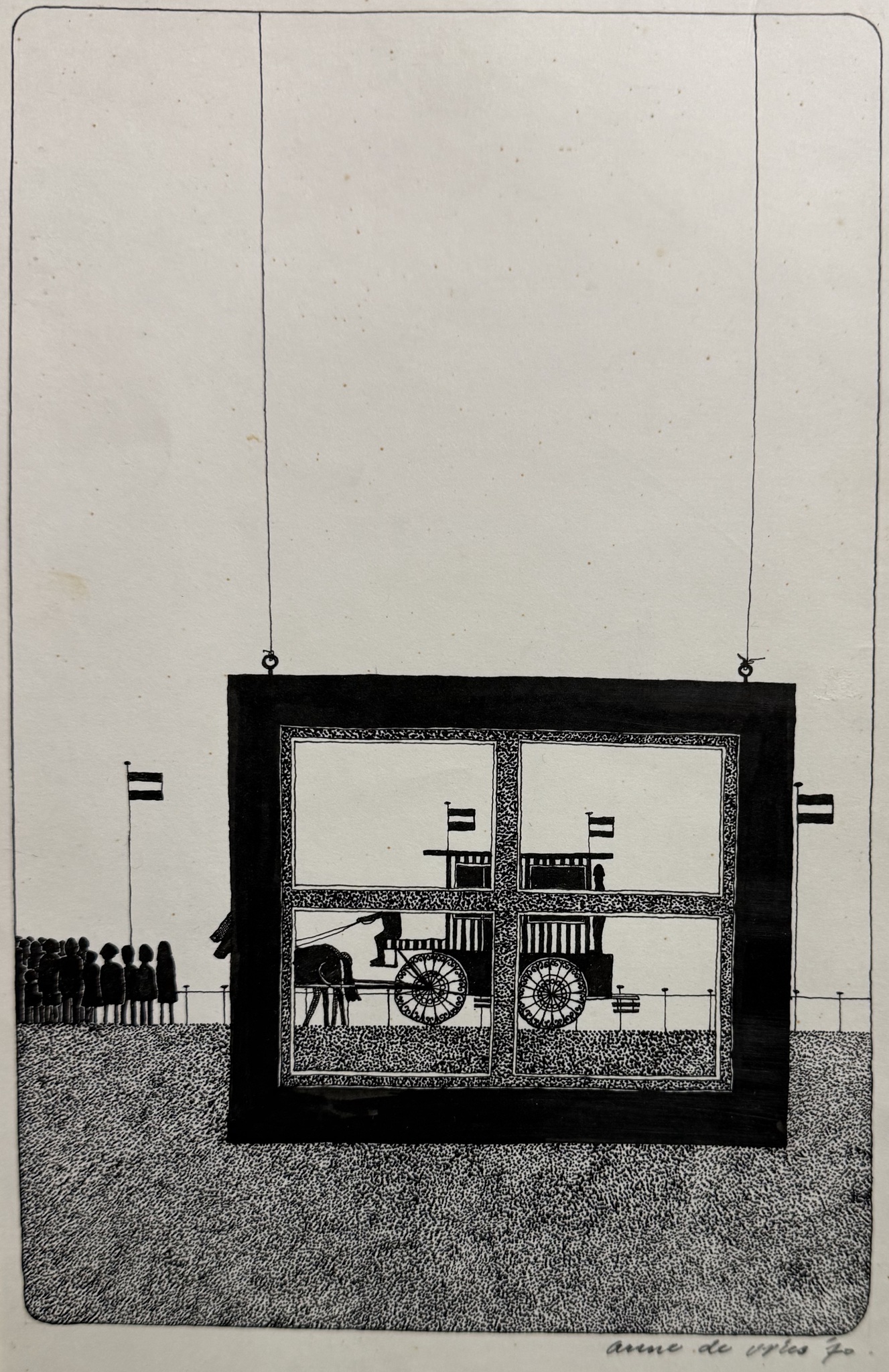 Pentekening met kroontjespen / tekenpen, penseel en Oost-Indische-inkt op ivoorkarton.