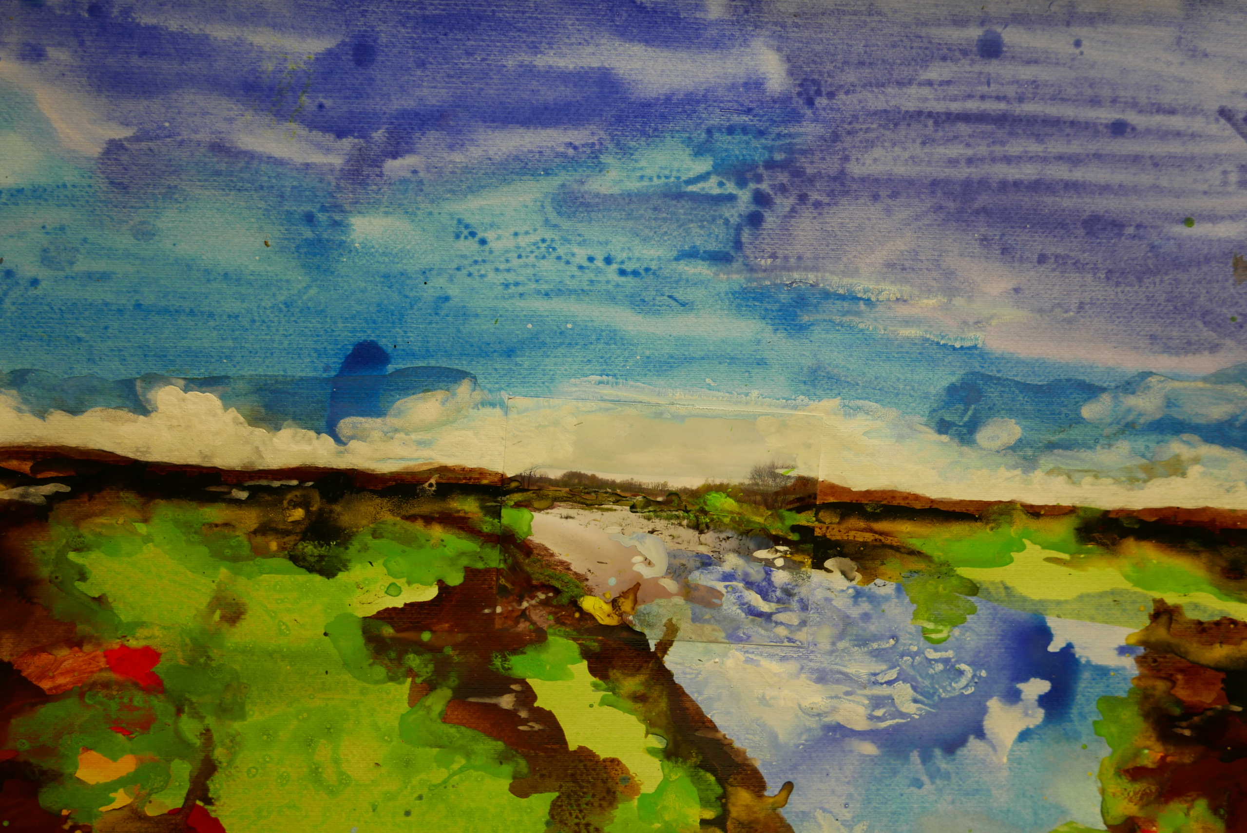 Thema in mijn werk is vaak de horizon. Het landschap dat voor je voeten ligt waar de horizon je uitnodigt om na te denken waar je vandaan komt en waar je heen gaat.