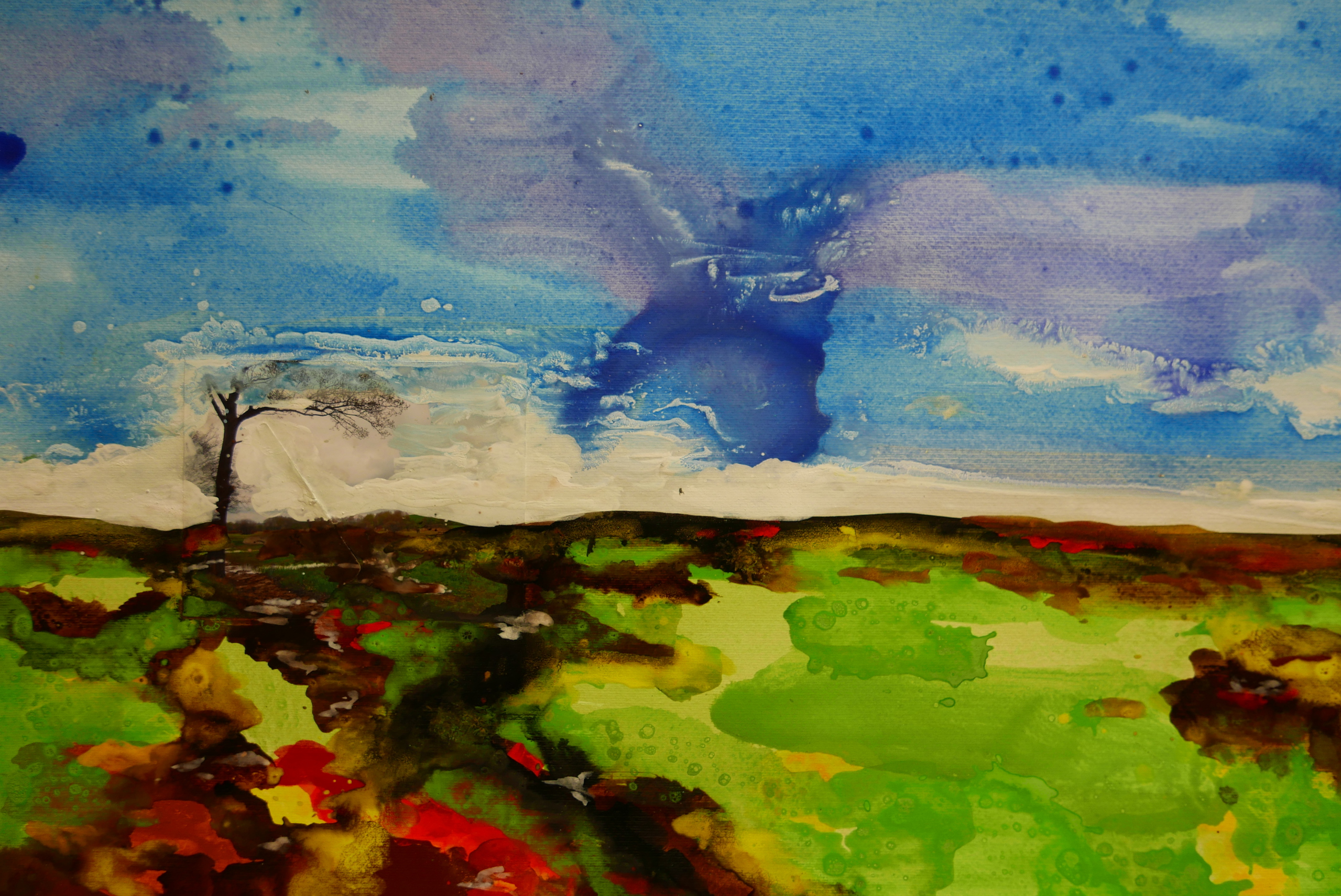 Thema in mijn werk is vaak de horizon. Het landschap dat voor je voeten ligt waar de horizon je uitnodigt om na te denken waar je vandaan komt en waar je heen gaat.