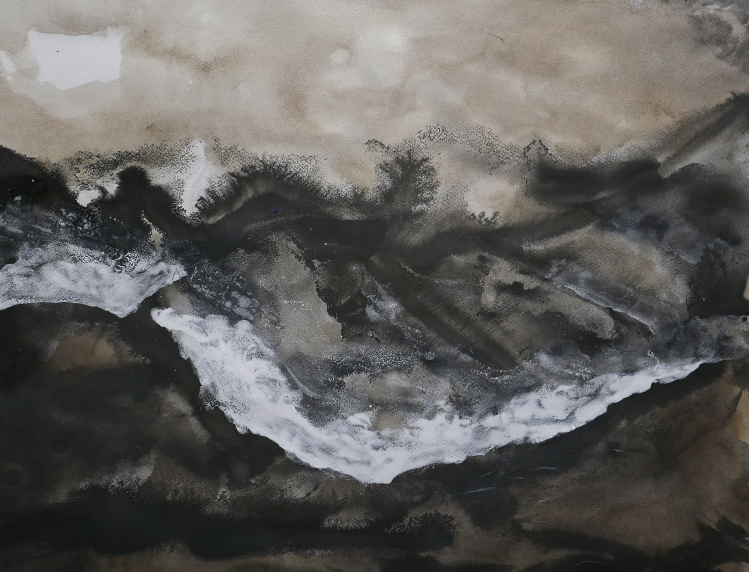 sumi-e, pigment, en inkt op papier - geïnspireerd door de Japanse landschapschilderkunst
