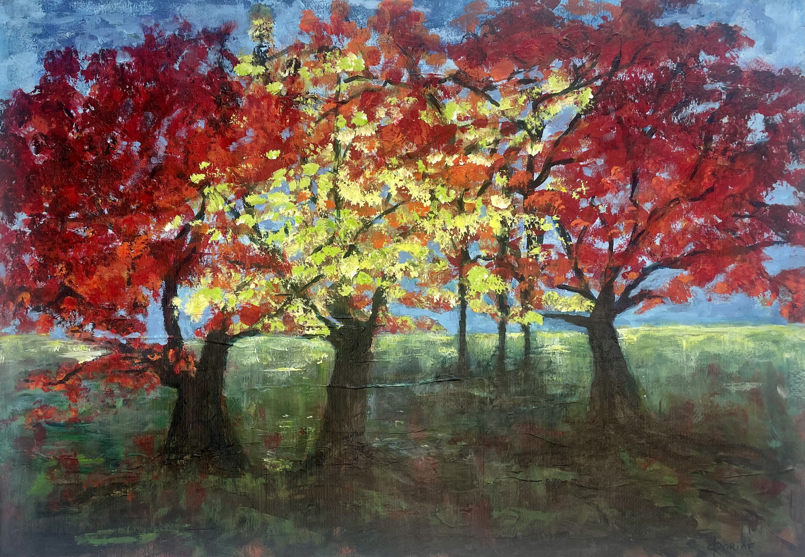 Rood Geel Boom Bomen Natuur Abstract Acryl Papier