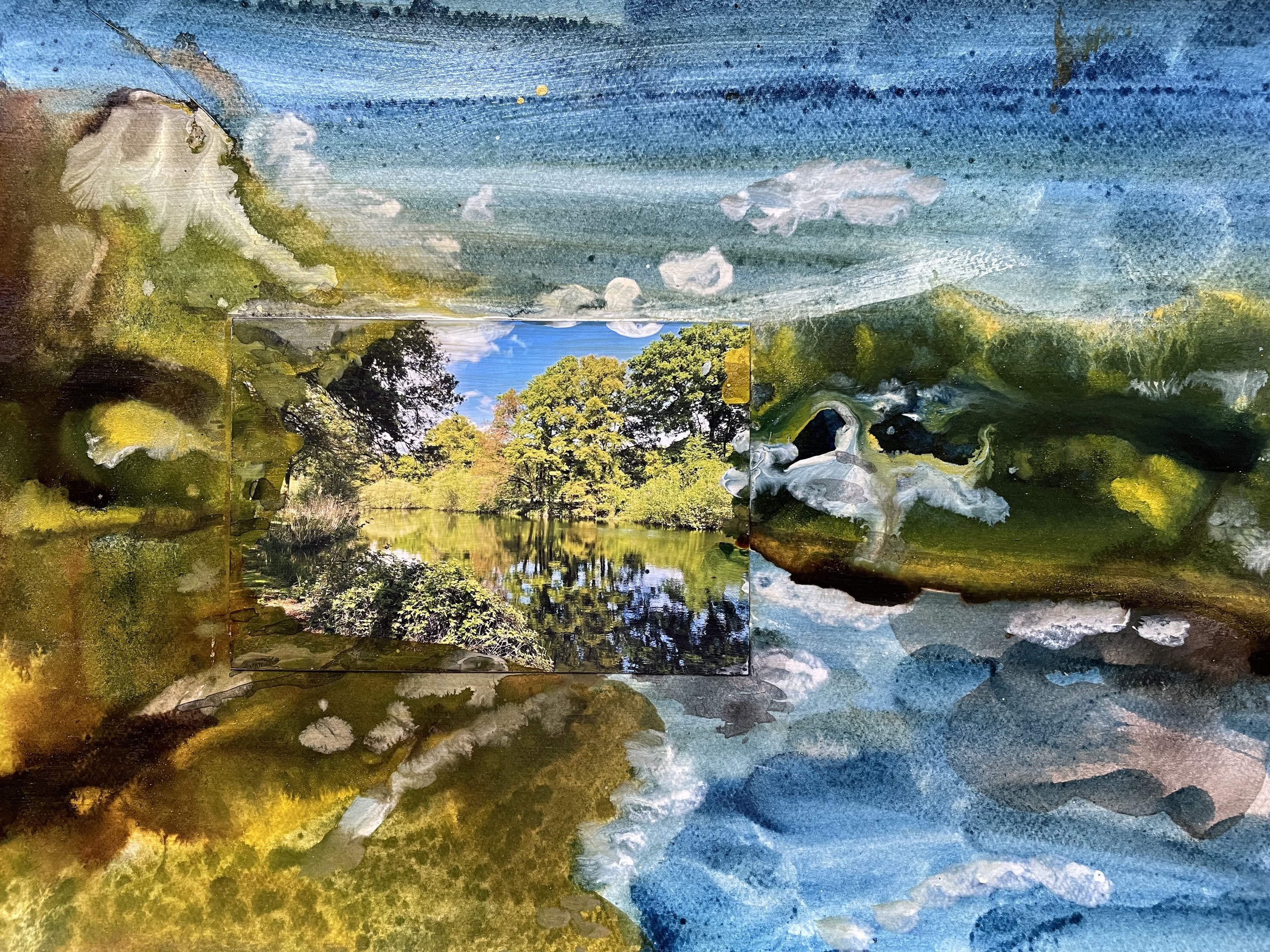 Meertjes ontstaan langs de dijken bij de Maas ter hoogte van Heumen, Overasselt, bij overstromingen en in Kleve Kermisdael - de foto vormt het uitgangspunt, pigment op papier - een serie van 24 werken - pigment gebonden met acrylaatbinder - daarna afgewerkt met een vernis