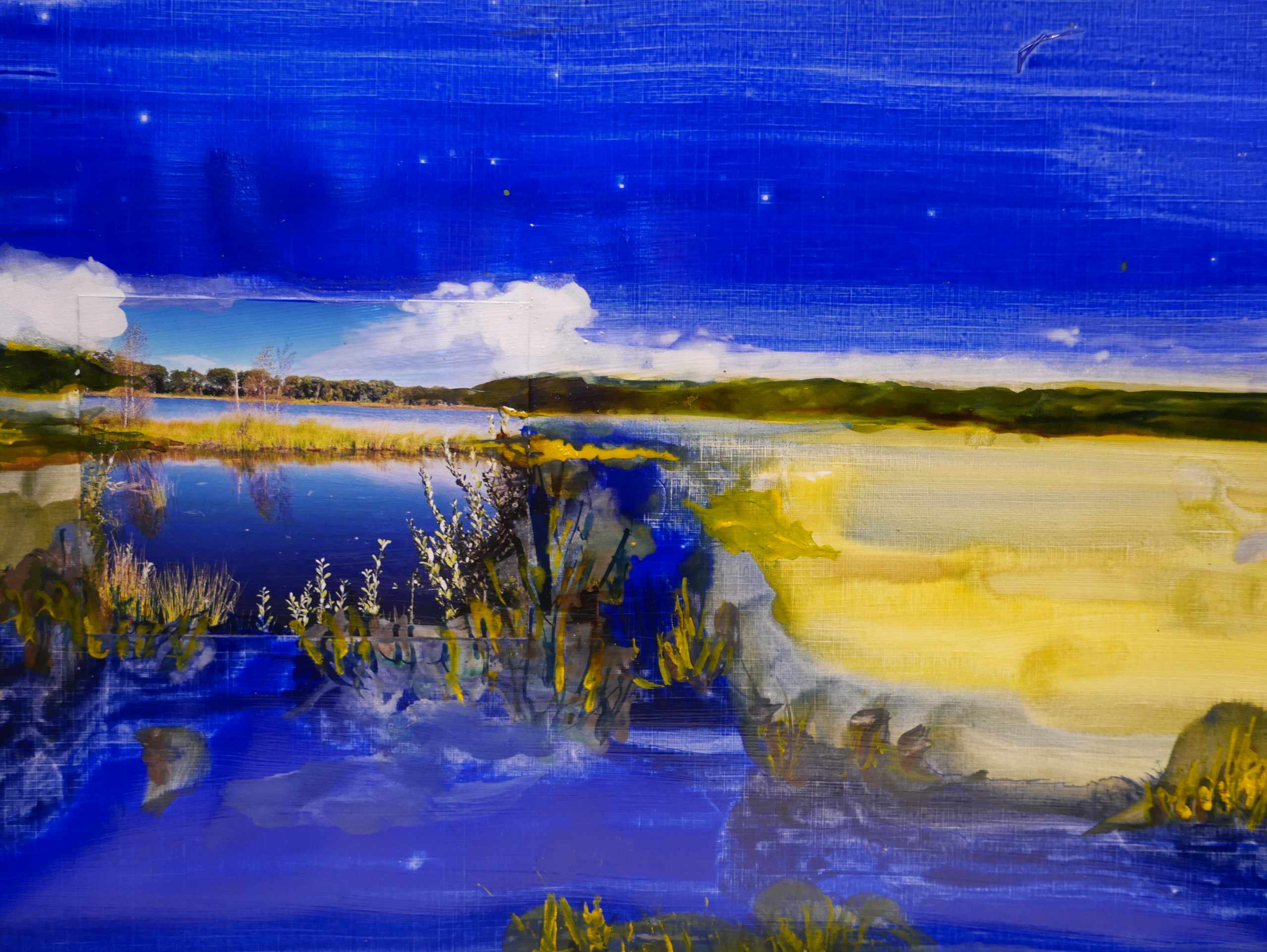 20 schilderijen met een geschilderd impressionistisch landschap geïnspireerd door een foto van de Overasseltse of Haterse vennen. De foto stamt uit september 2024. Pigment op speciaal papier 48×36 cm. Een eerbetoon aan Vincent van Gogh