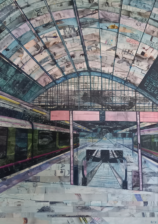Ik maak in mijn werken gebruik van papier en olieverf. Sommigen noemen het collages, ik noem het liever collageschilderijen.
