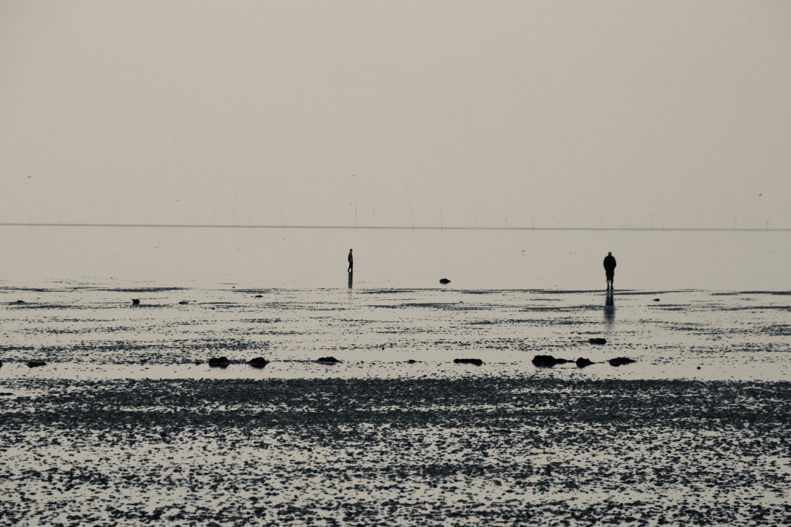 Mensen Landschap Zilver Zwartwit Zeezicht Waddenzee Wad